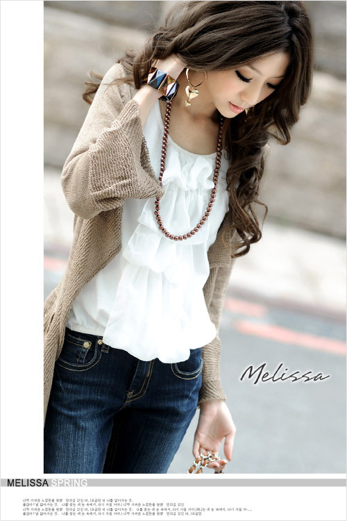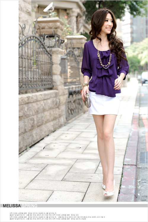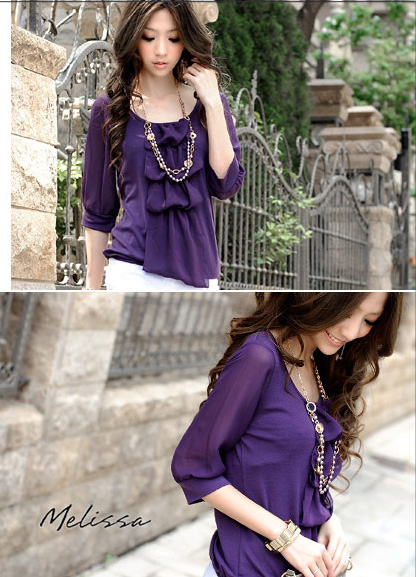 Amanda49 Elegance and Stylish Waves Shape Design Chiffon Middle Sleeve Blouse |