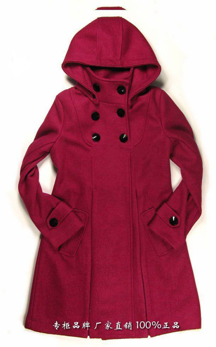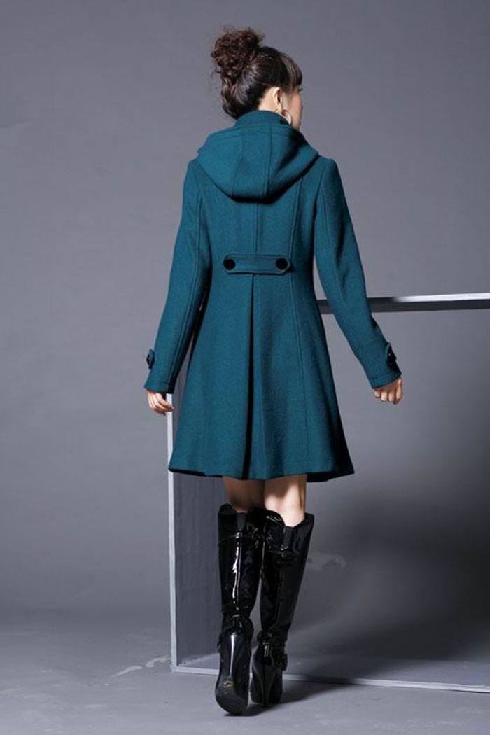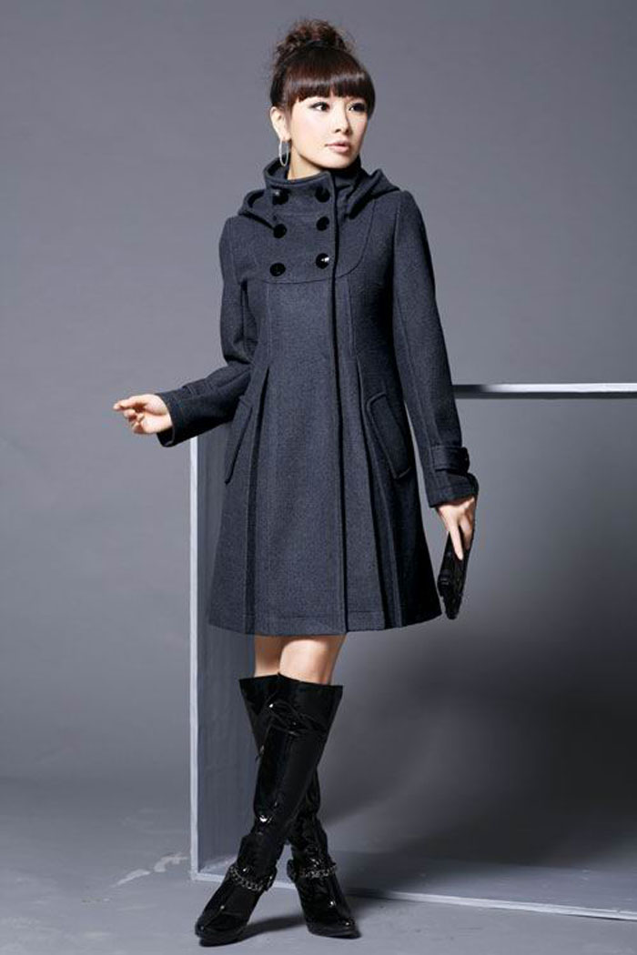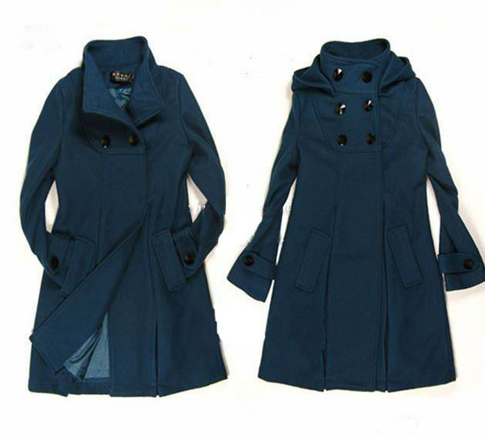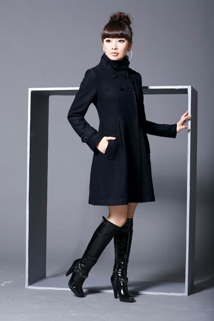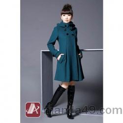 Amanda49 Elegant and Slim Double-Breasted Frills Long Sleeves Worsted Coat For Women |