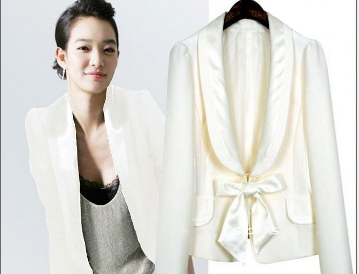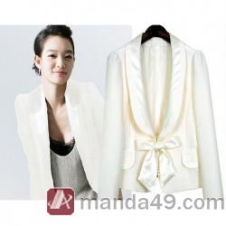 Amanda49 Elegant and Slim Lapel Lace-Up Bowknot Embellished White Long Sleeves Western-Style Clothes For Women |
