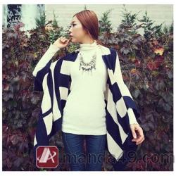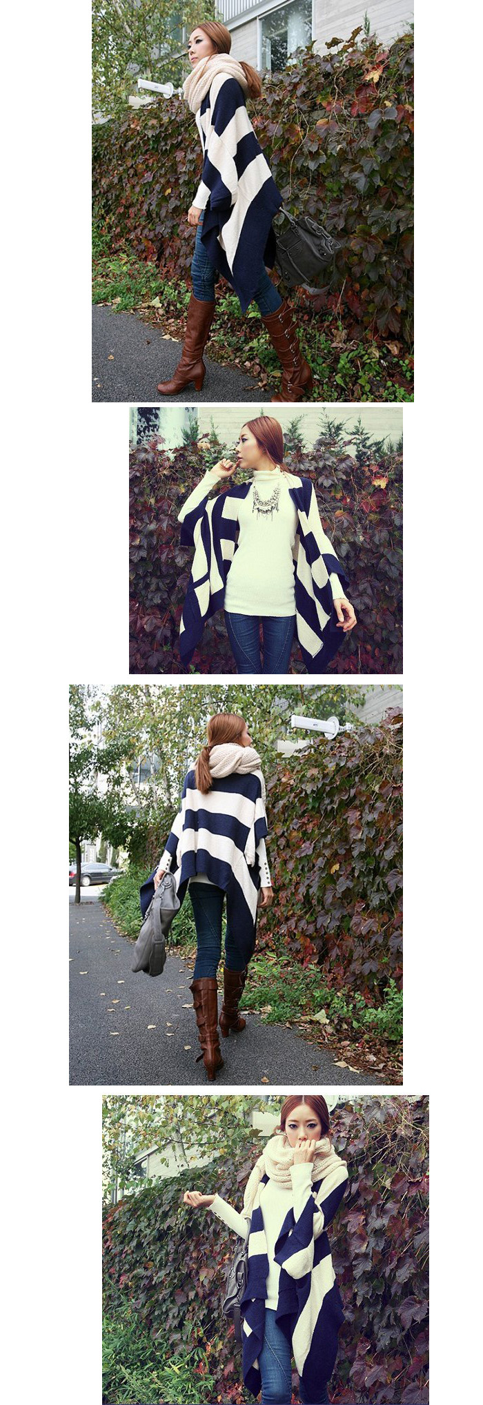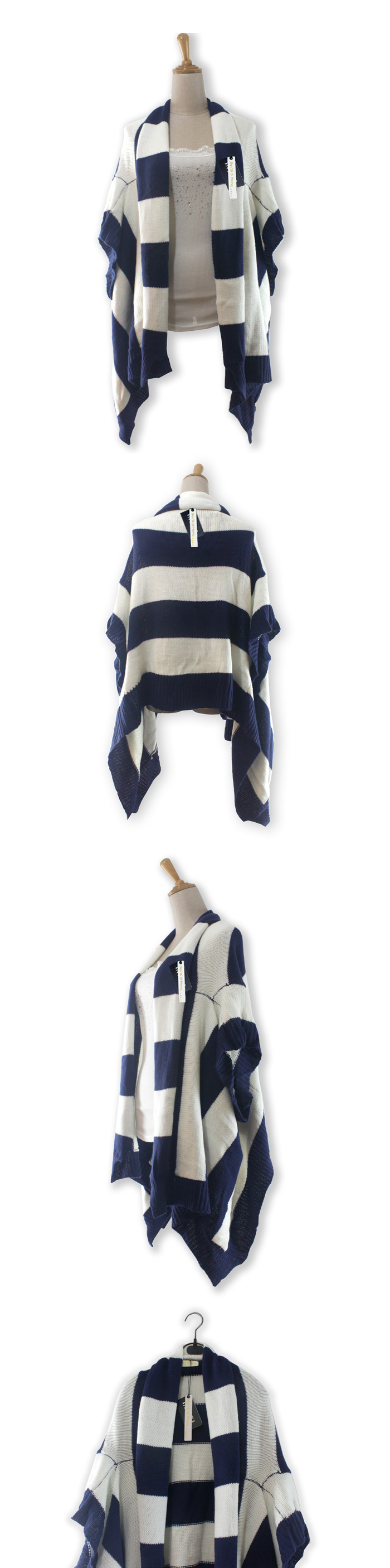 Amanda49 Elegant and Slim Stripes Frills Irregularity Hem Royal Blue Acrylic Coat For Women |