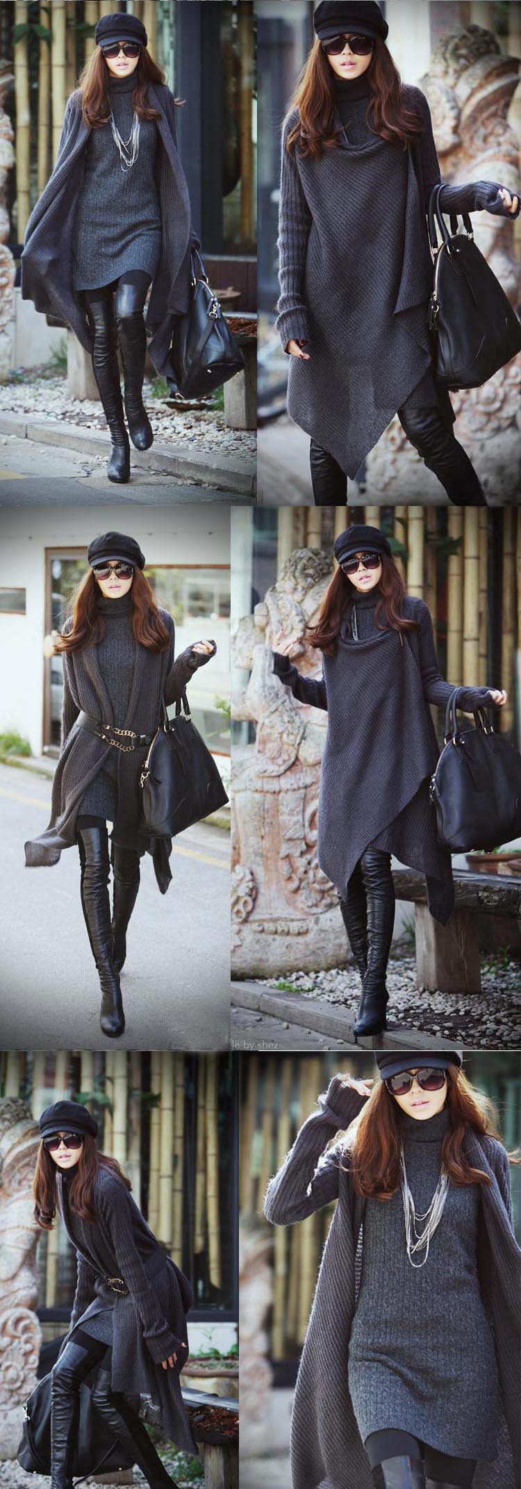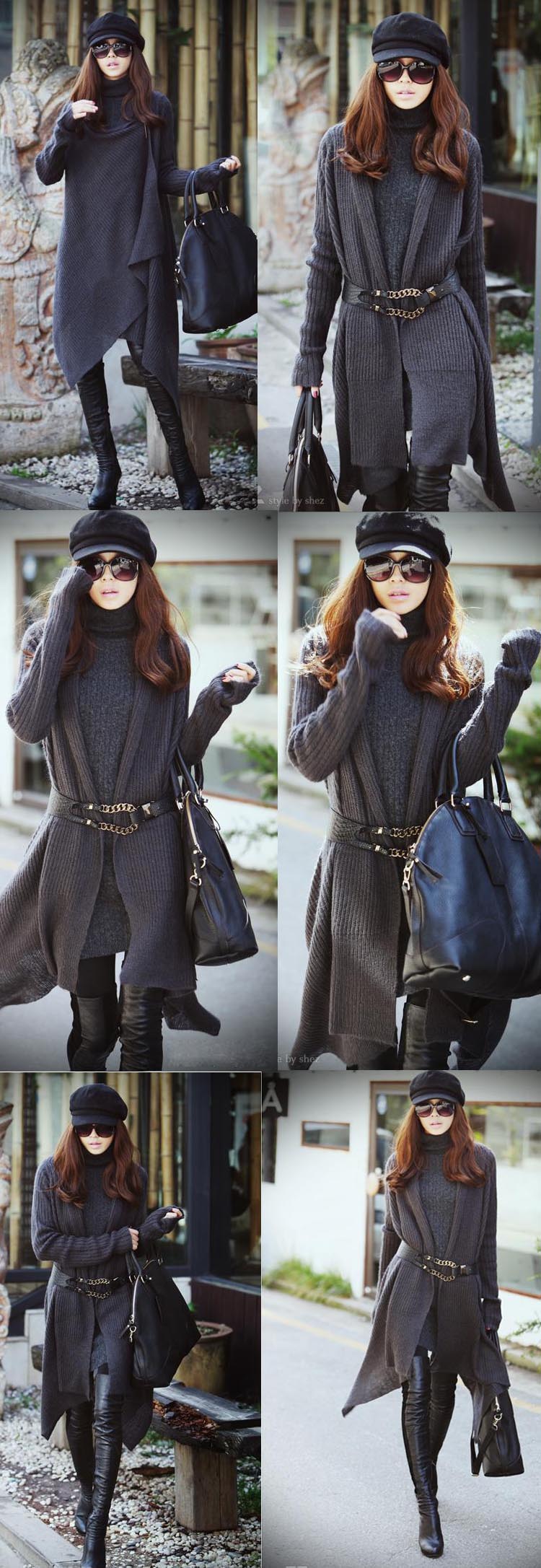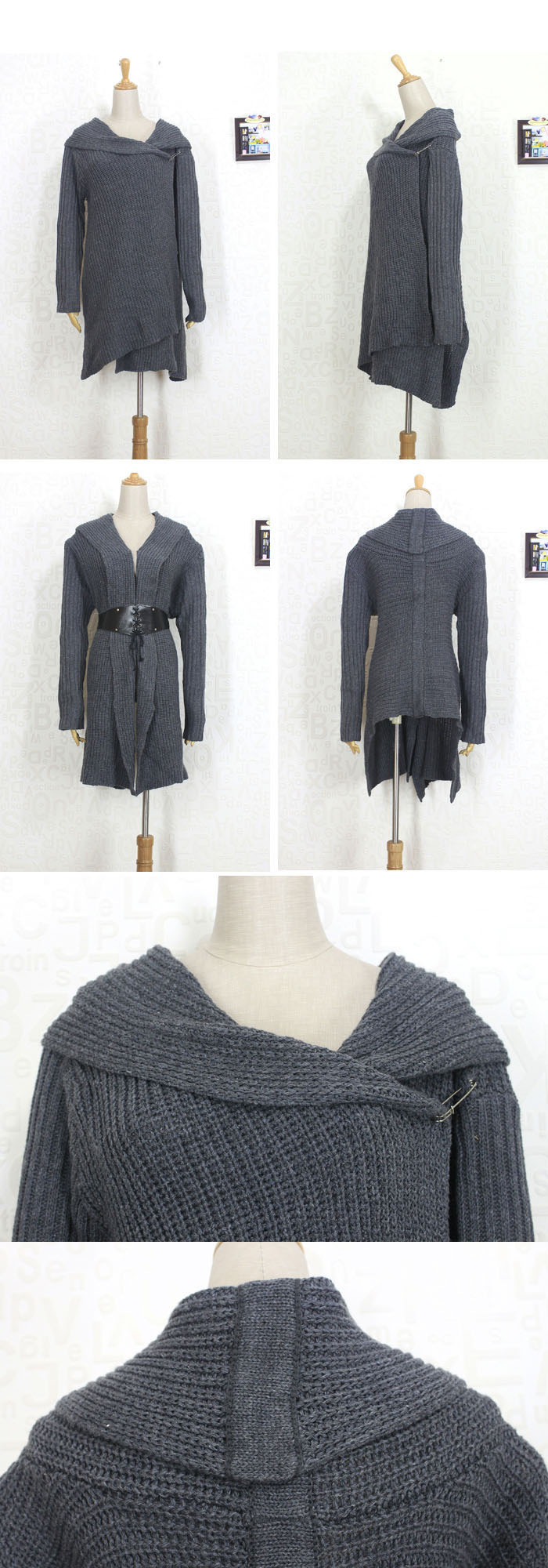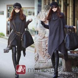 Amanda49 Elegant Cross Design Irregularity Hem Dark Grey Long Sleeves Coat For Women |
