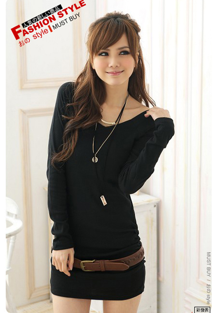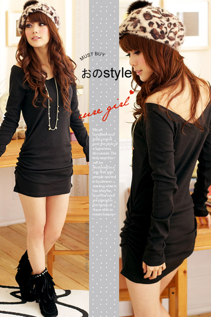 Amanda49 Elegant Double-V Collar Off-Shoulder Frills Long Sleeves T-Shirt For Women |