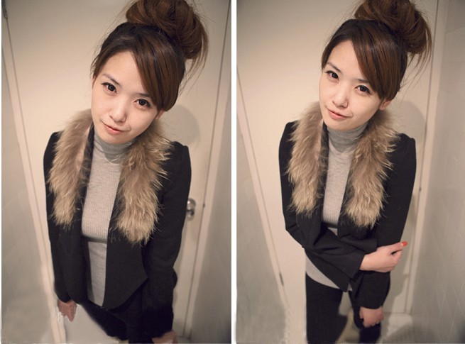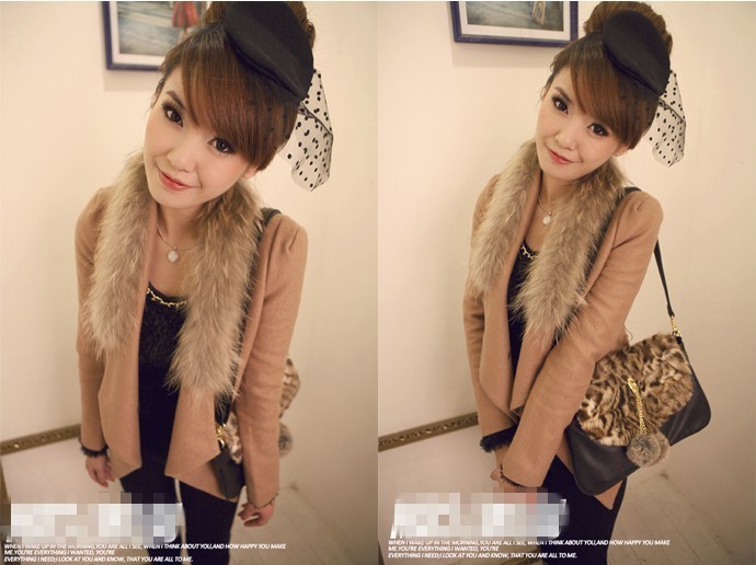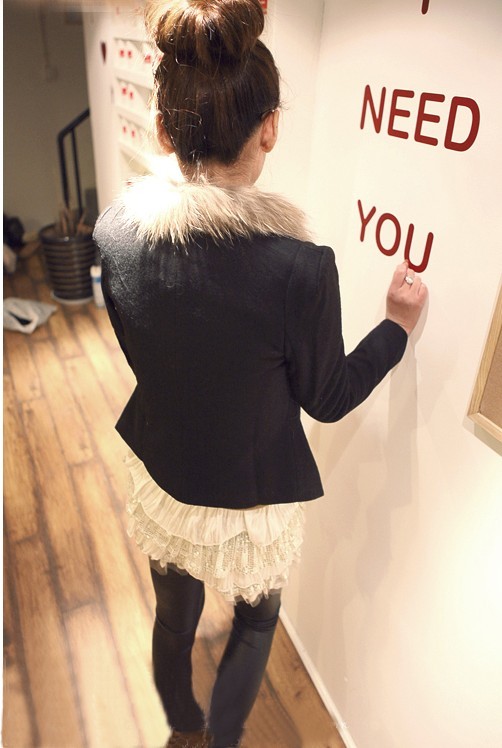 Amanda49 Elegant Frills Shearling Lapel Long Sleeves Thicken Coat For Women |