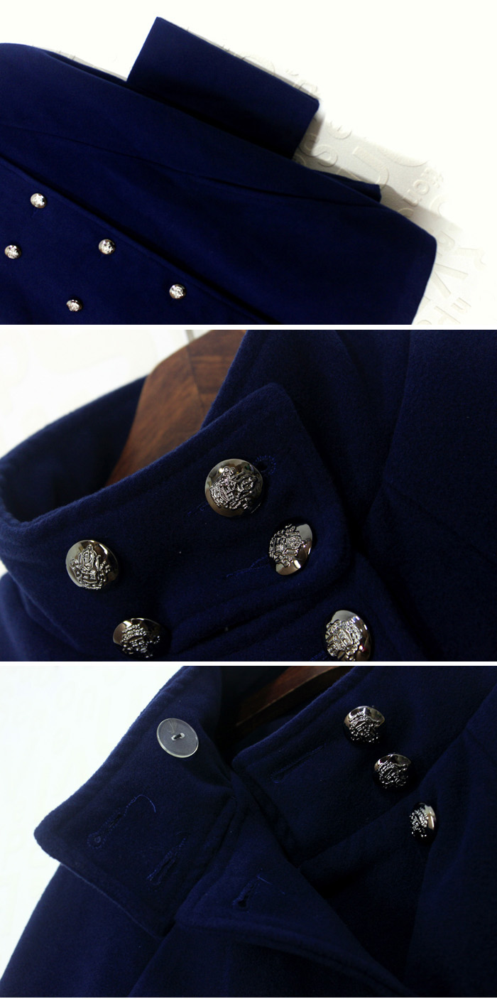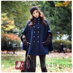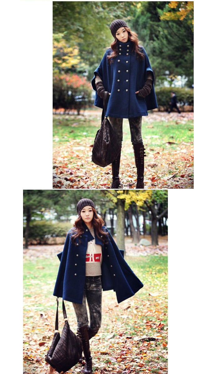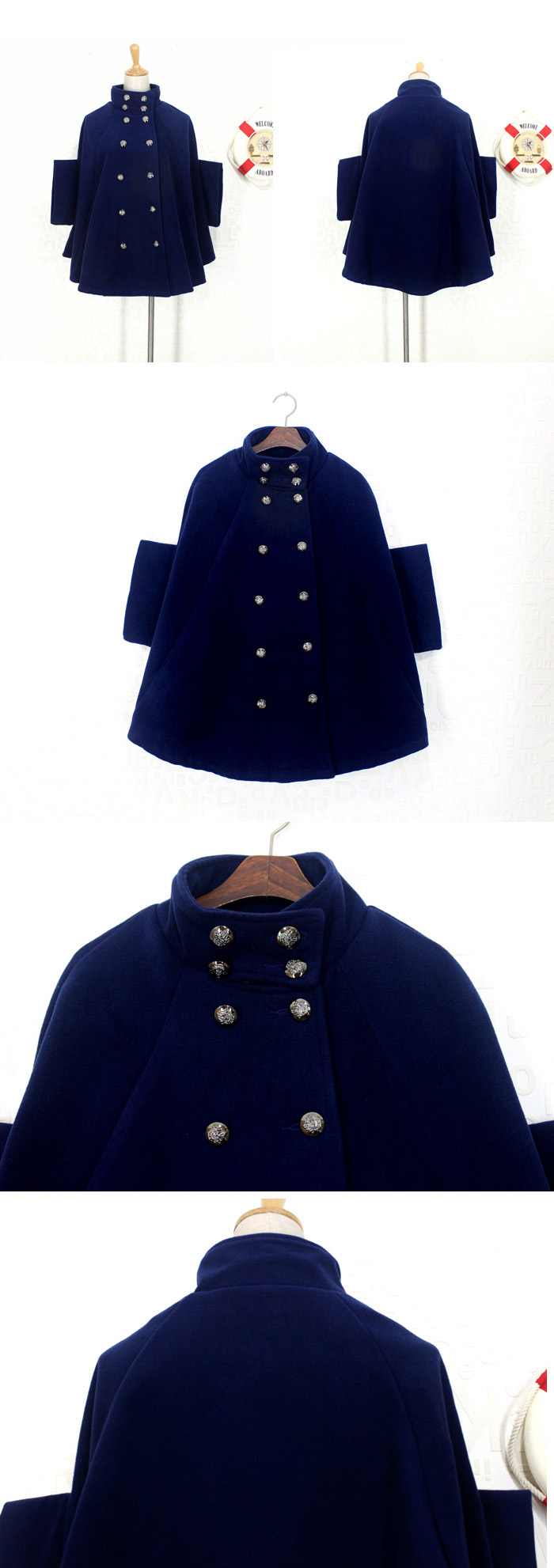 Amanda49 Elegant High Collar Double-Breasted Bat-Wing Royal Blue Sleeves Fleeces Cloak For Women |