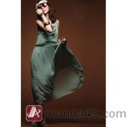 Amanda49 Elegant Lotus Leaf Collar Elastic Ruffles Green Chiffon Long Sleeveless Dress--Women's Dresses |