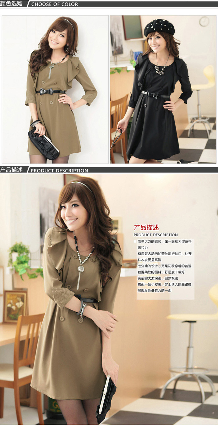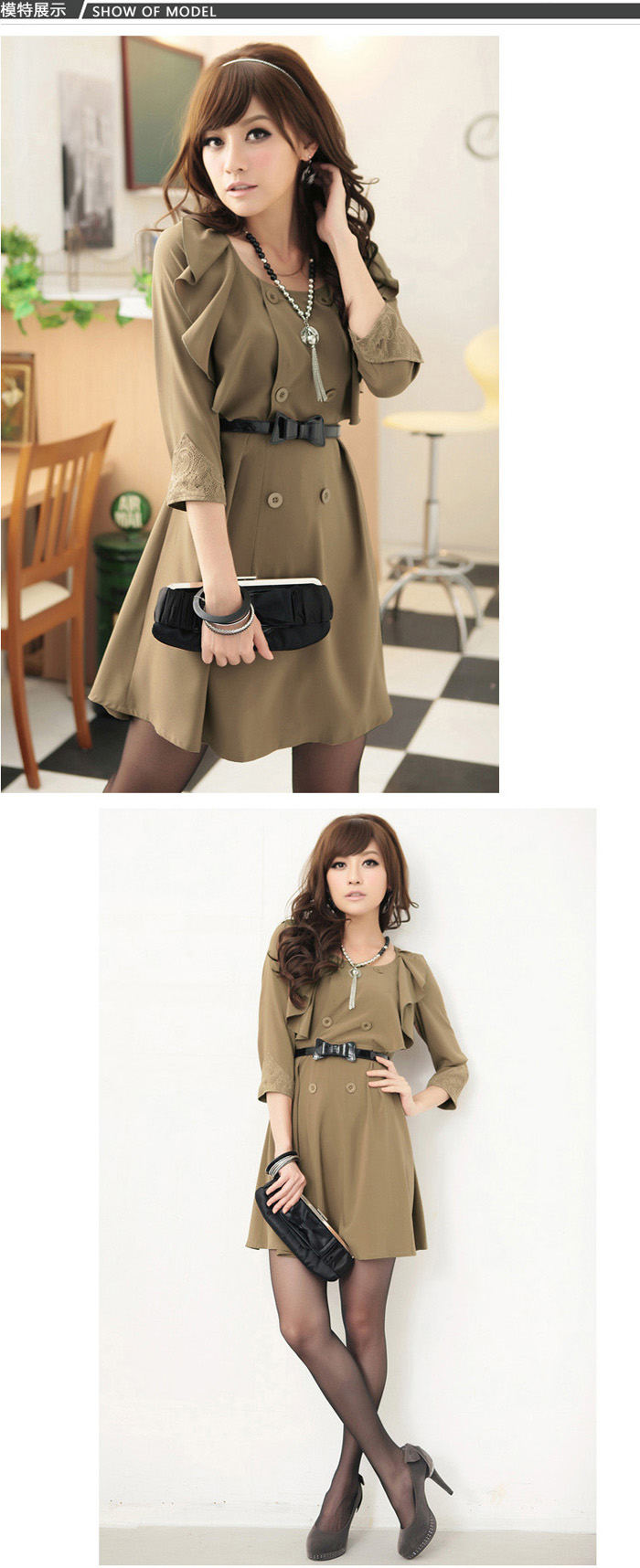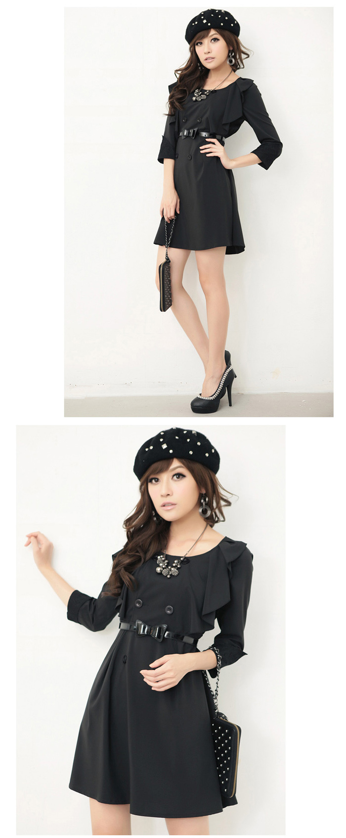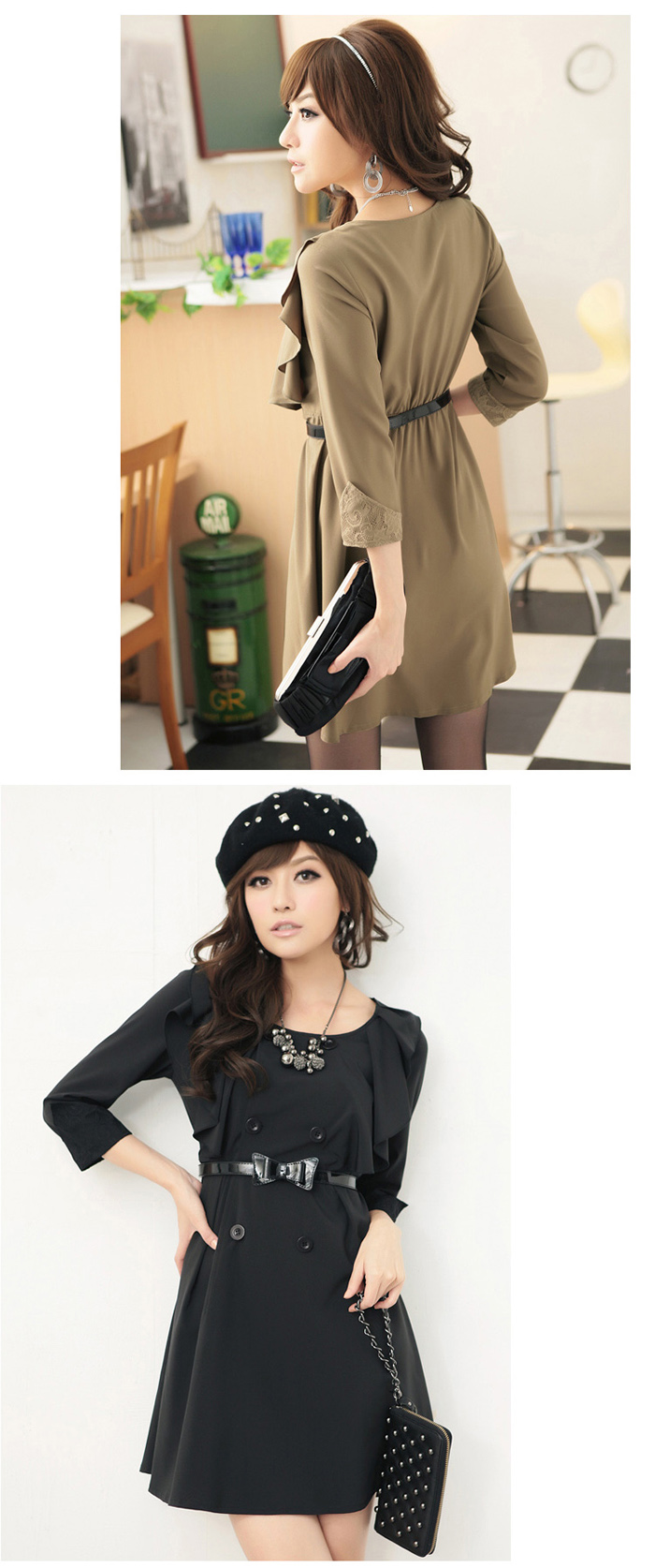 Amanda49 Elegant Round Neckline Frills Lace Quarter Sleeves Cotton Blended Dress For Women |
