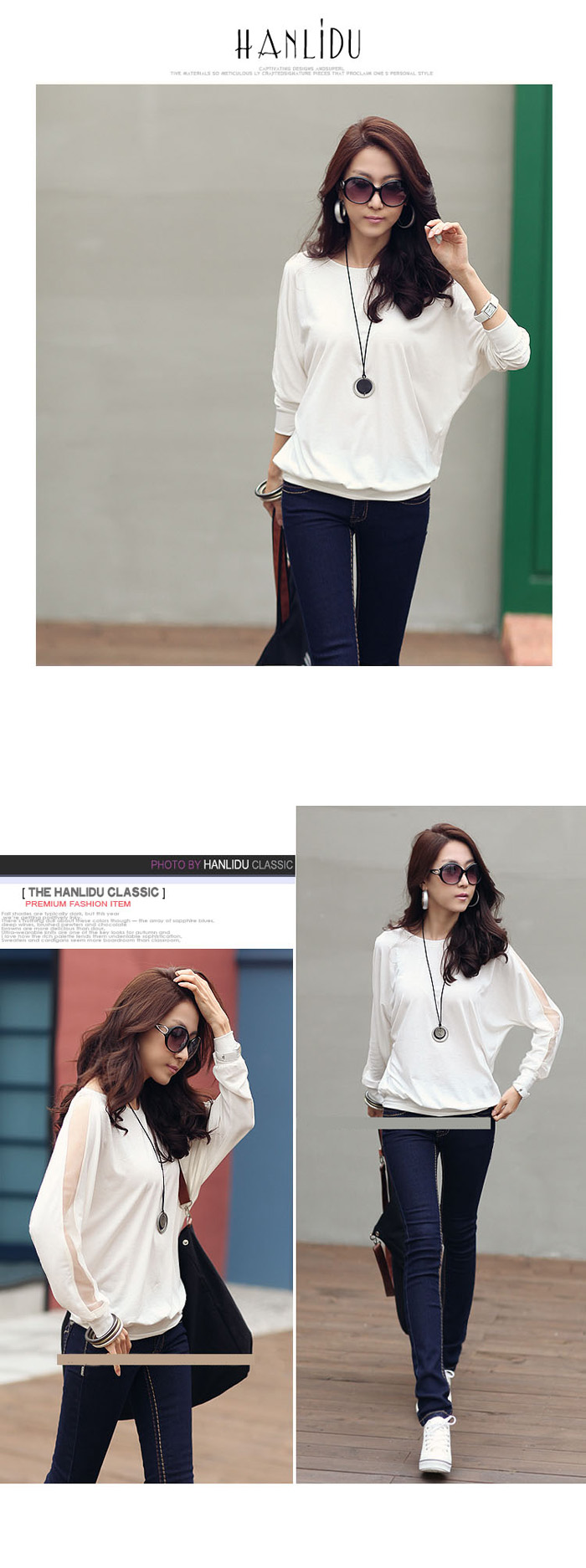 Amanda49 Elegant Round Neckline Transparent Line Embellished Bat-Wing Sleeves T-Shirt For Women |