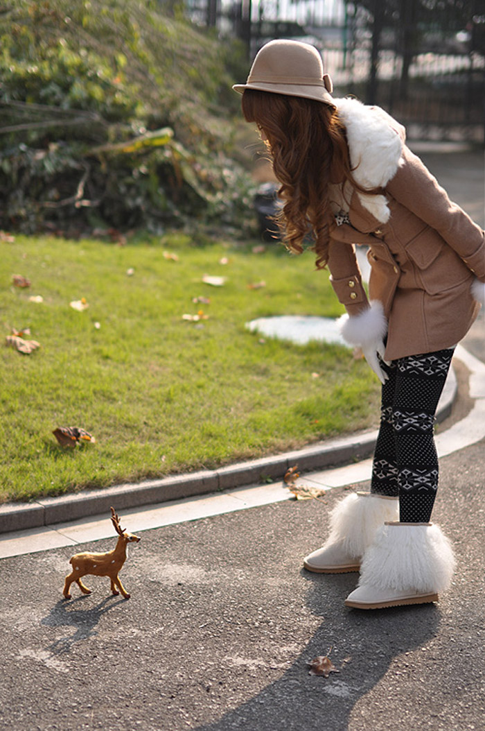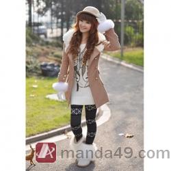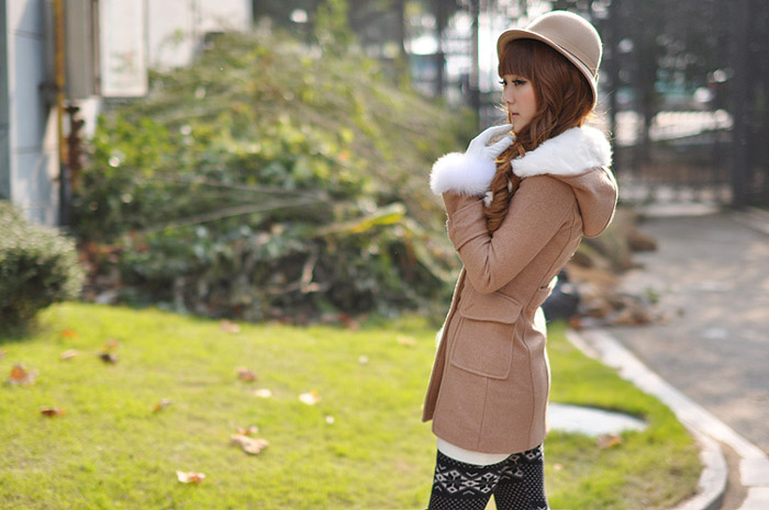 Amanda49 Elegant Shearling Lapel Double-Breasted Dark Khaki Long Sleeves Coat For Women |
