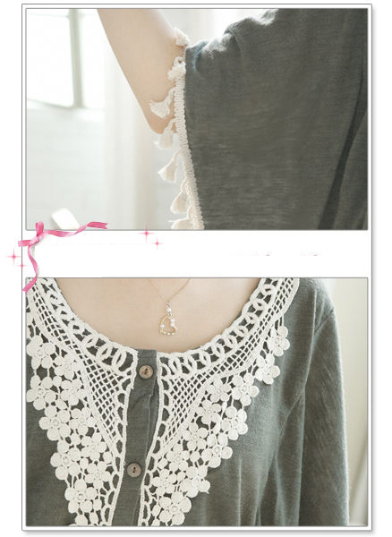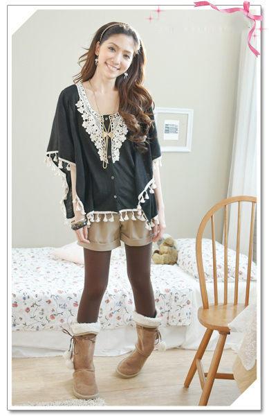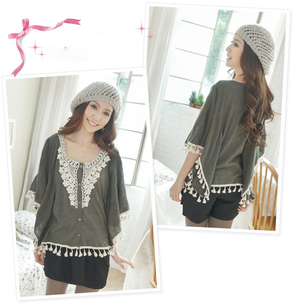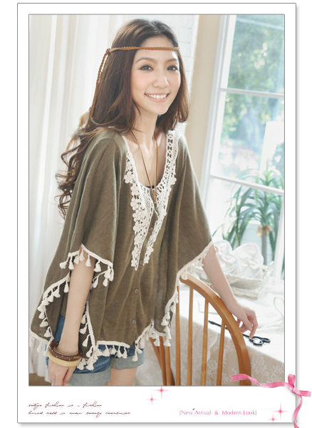 Amanda49 Exquisite and Elegant Openwork Lace Collar Tassel Sleeves Cotton Cloak For Women |