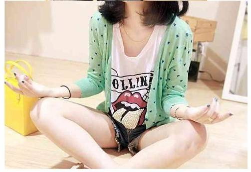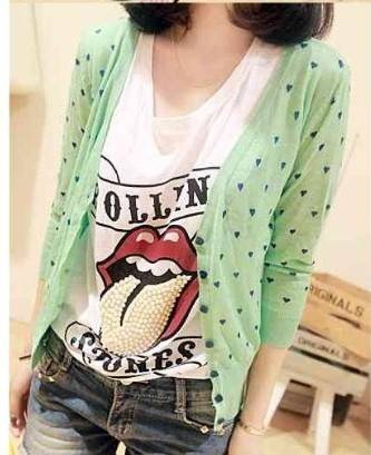 Amanda49 Exquisite Heart Printed Long Sleeves Knitting Coat For Women |
