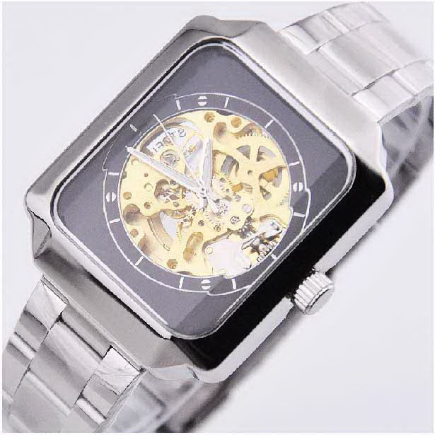 Amanda49 Fashion and Generous Square Style Mechanical Wrist Watch for Male (Black Chasis) |
