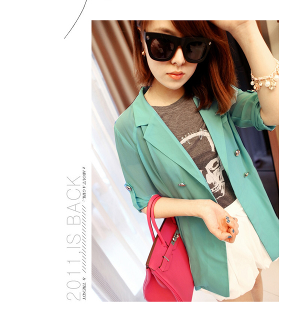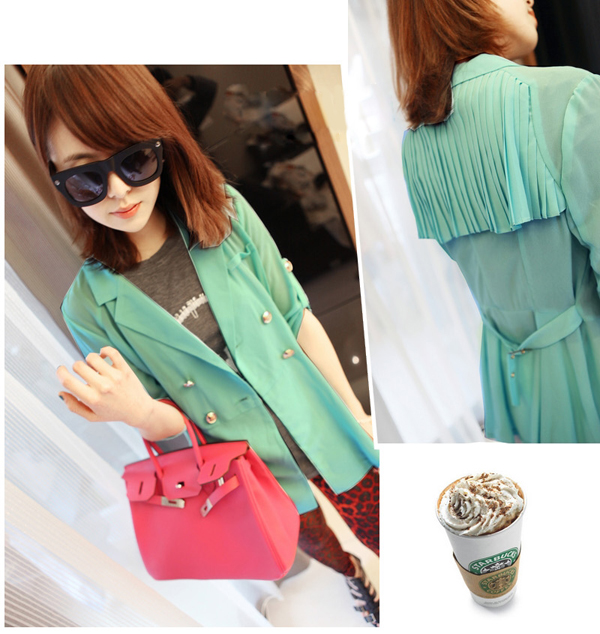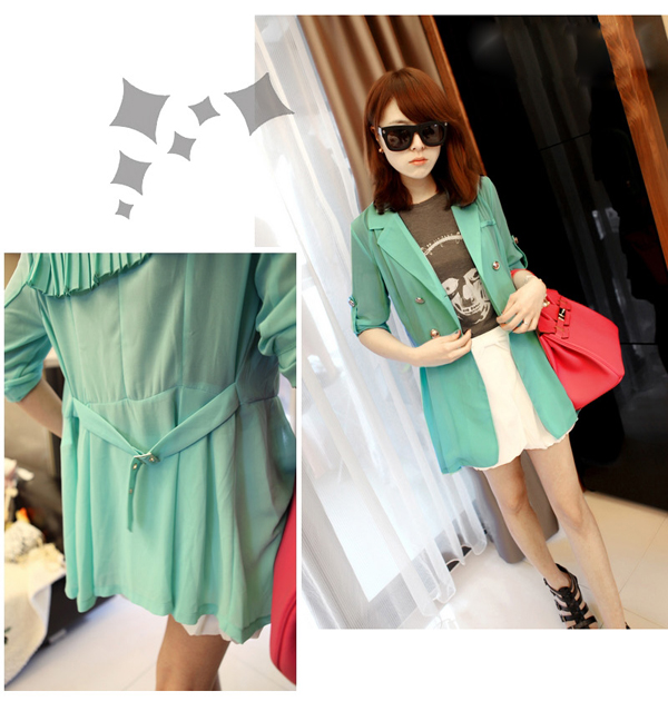 Amanda49 Fashion and Lovely Style Translucent Double-breasted Decorated Chiffon Coat For Woman/Girl |