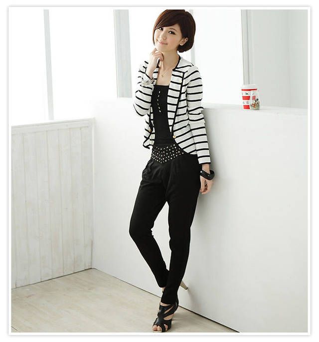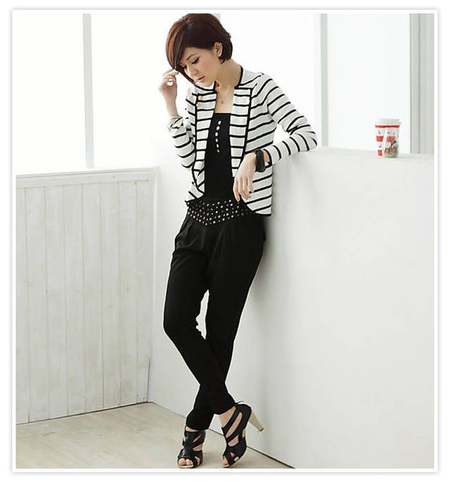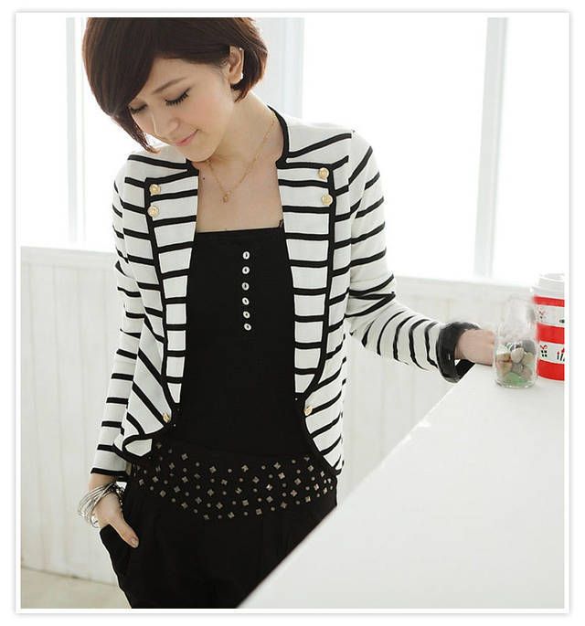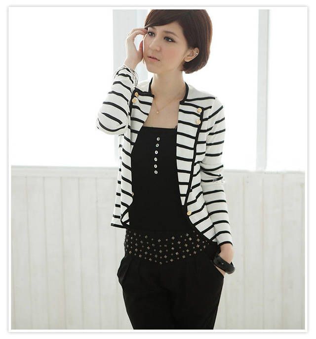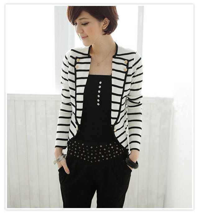 Amanda49 Fashion and Unique Style Strips Pattern and Button Decorated Coat For Female |