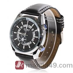 Amanda49 Fashion Calendar and Day of Week Display Leather Watch with Watch Box - Black |