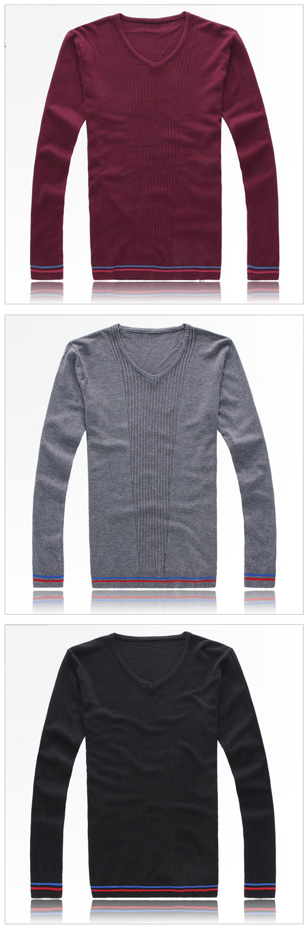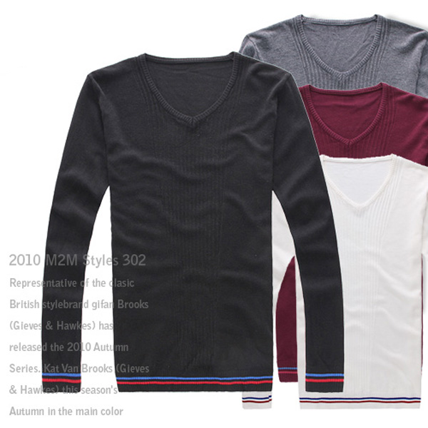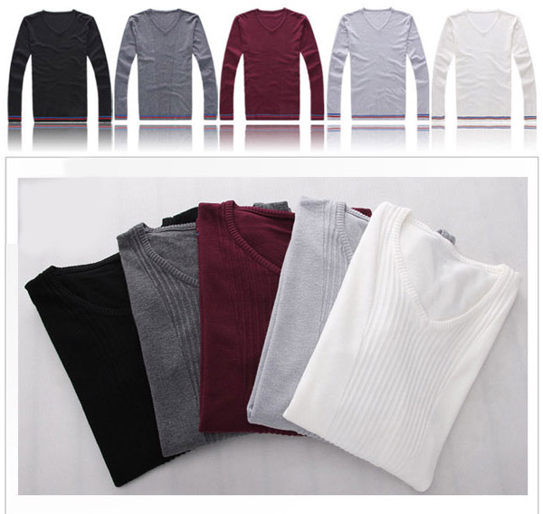 Amanda49 Fashion Simple Style V-neck Long Sleeve Bottoming Knitting Sweater For Man |