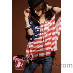 • Amanda49 Fashion Stripe Patterns Cotton Short Sleeve T-Shirt--Women's Blouses