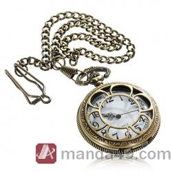 Amanda49 Fashion Style Roman Pocket Watch with Flower Pattern&Chain |