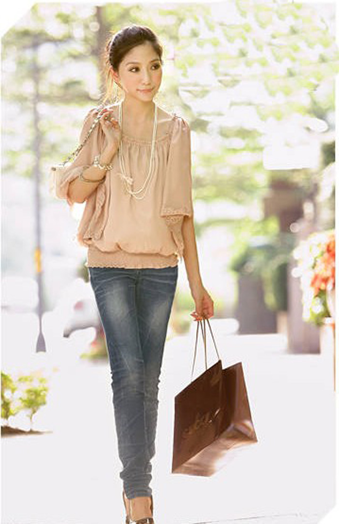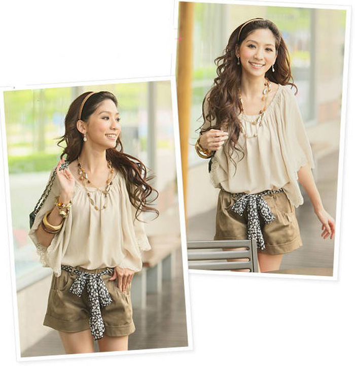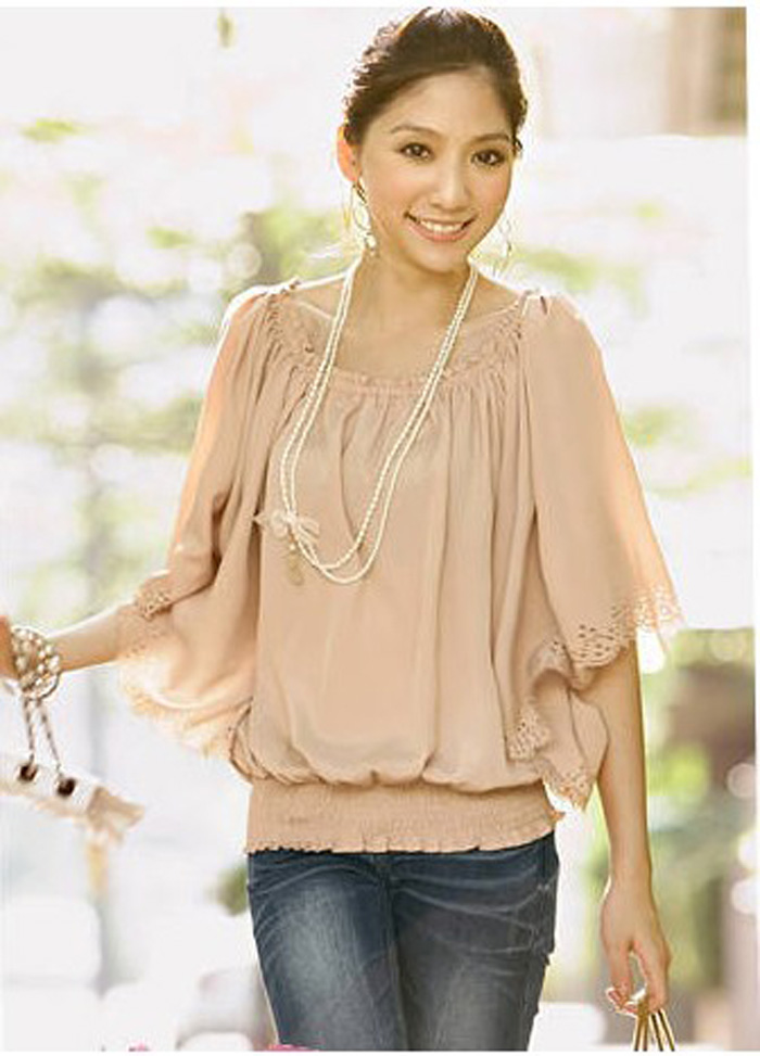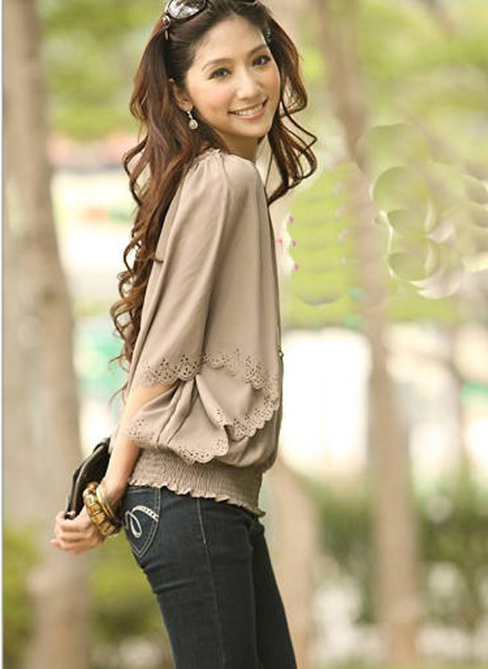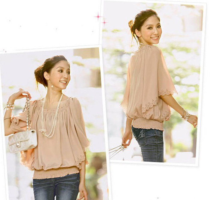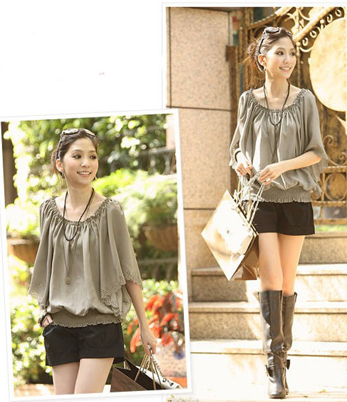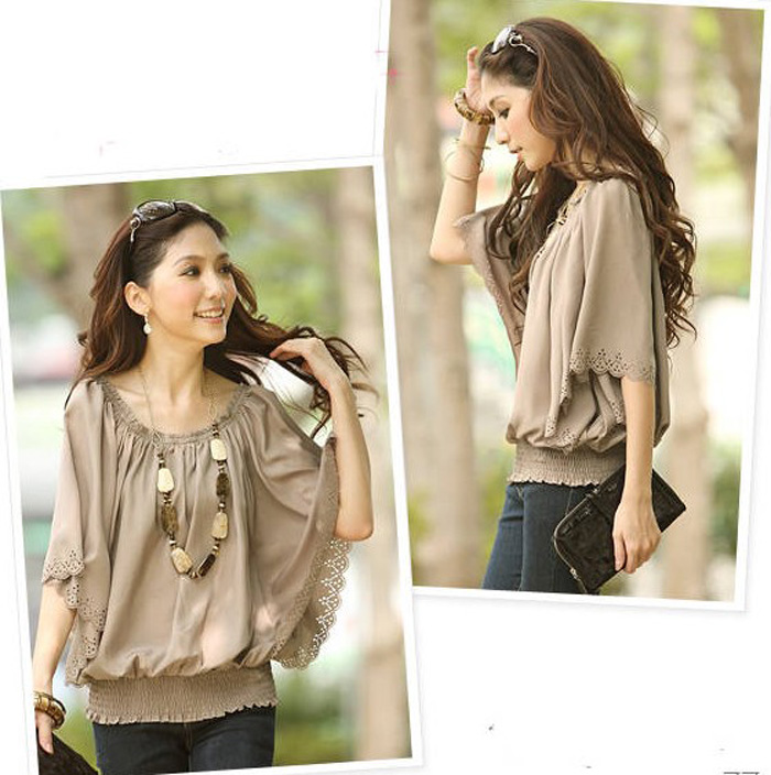 Amanda49 Fashion Style Round Collar and Batwing Sleeves Blouse For Female |