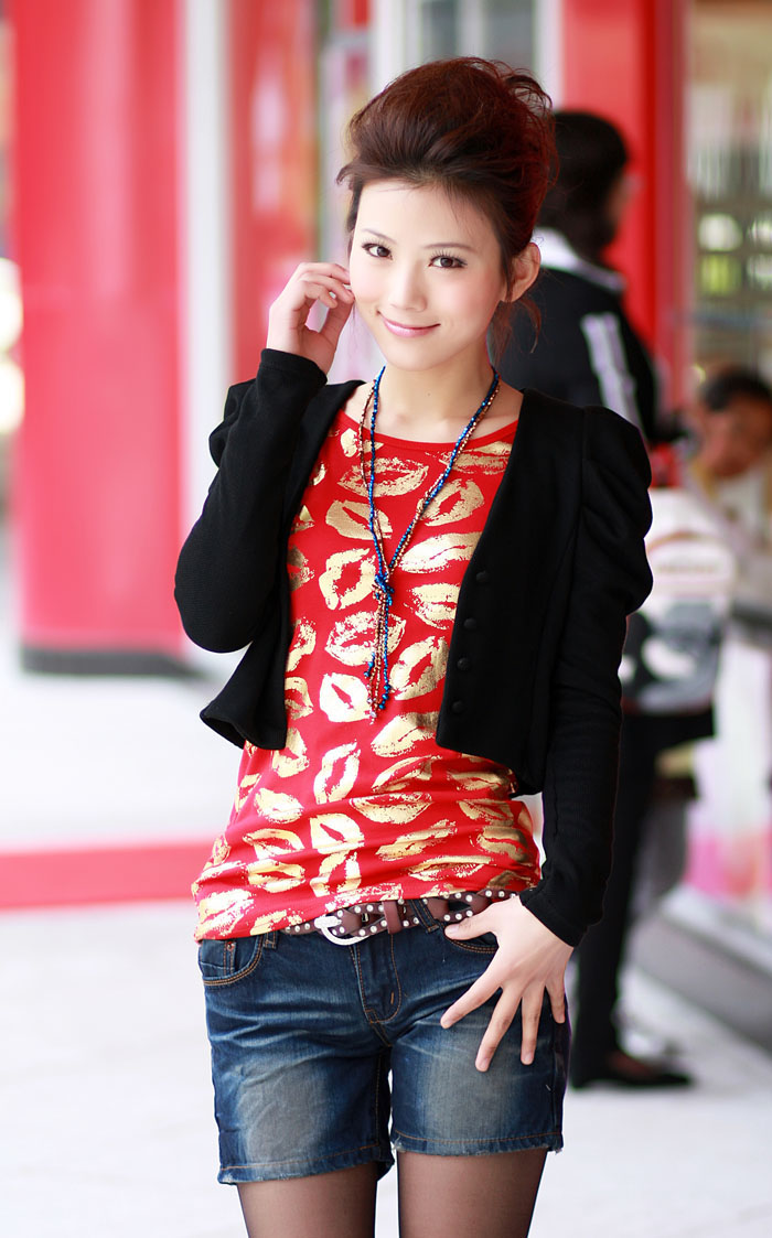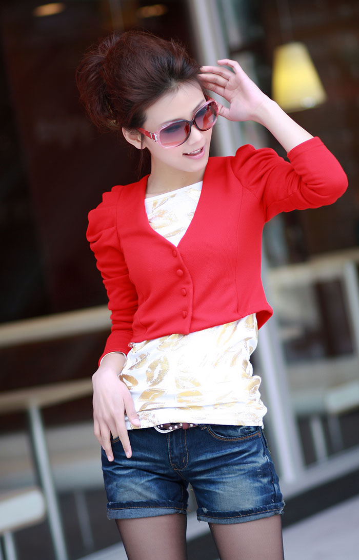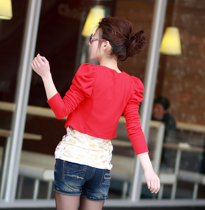 Amanda49 Fashion Style Slim and Attractive Puff Sleeve Short Coat |