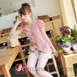 Amanda49 Fashion Sweet V-Neck Pink Chiffon Short Sleeve Blouse--Women's Blouses |