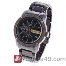 Amanda49 Fashion Waterproof Chronometer Japan Movt Black Dial Watch with Strip Hour Marks and Date Display- Black |