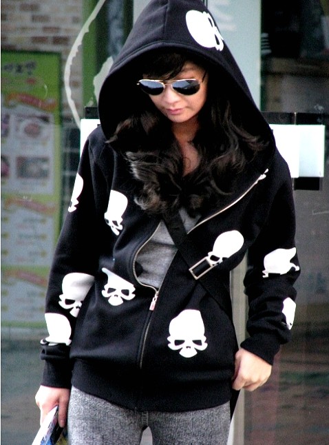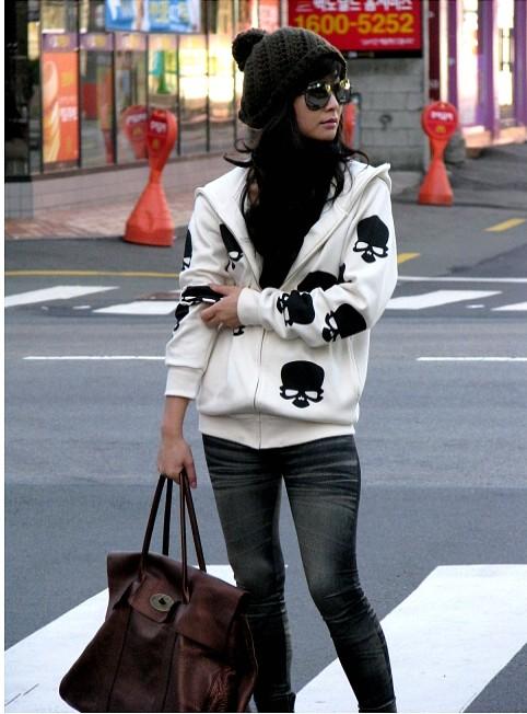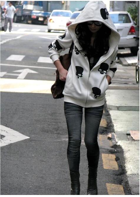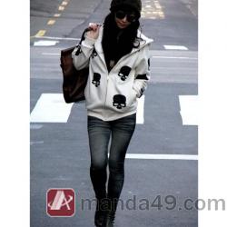 Amanda49 Fashionable and Casual Crossbones Printed Long Sleeves Coat For Women |