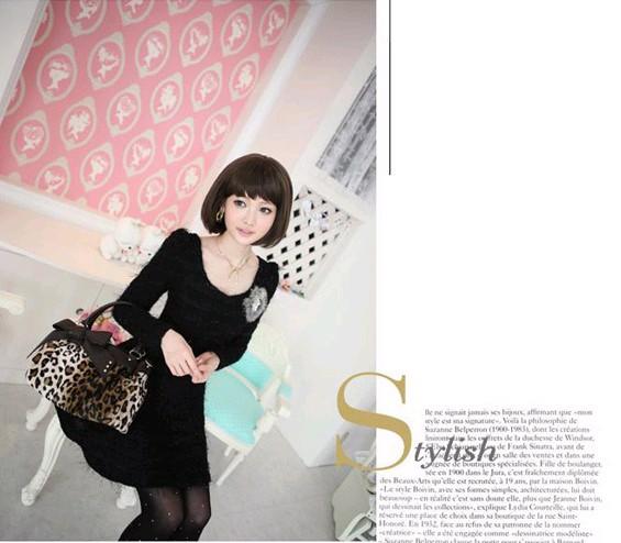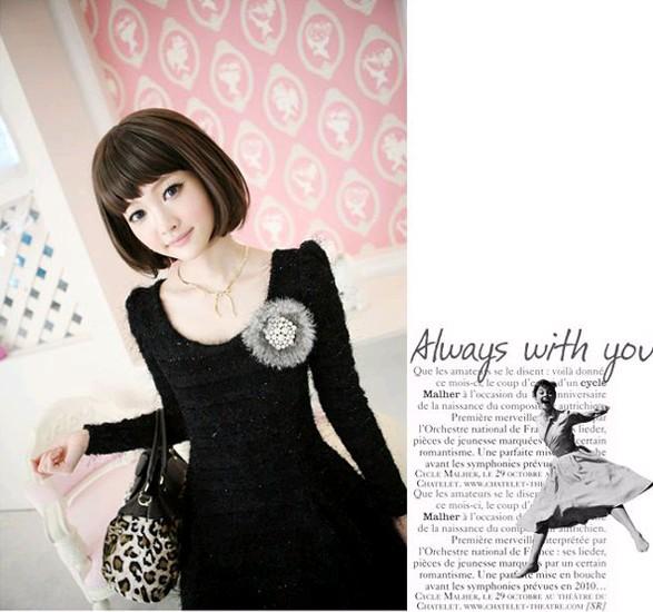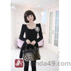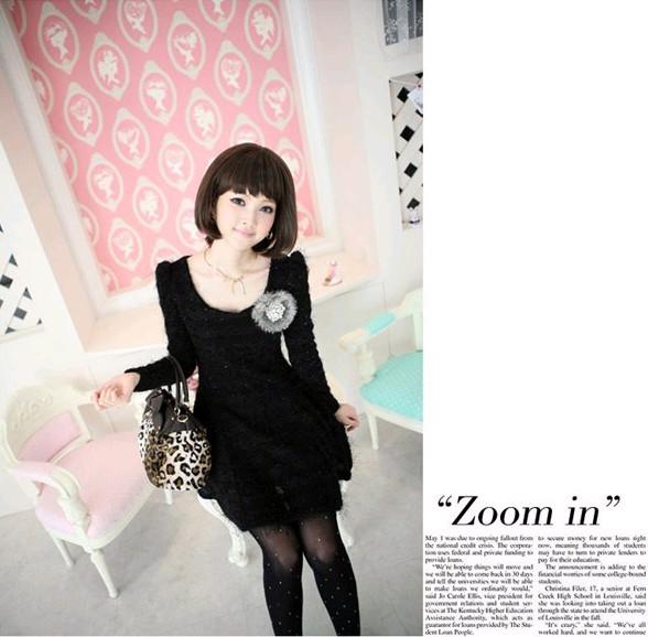 Amanda49 Fashionable and Elegant Round Neckline Black Long Sleeves Dress For Women |