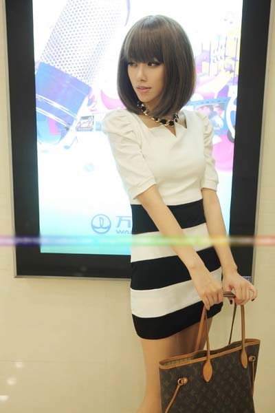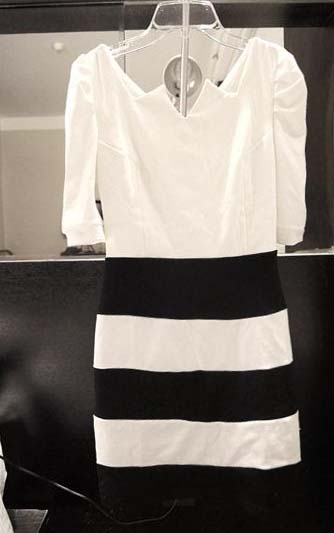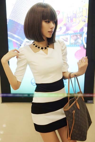 Amanda49 Fashionable and Fittless Stripe Patterns Puff Sleeve Dress |