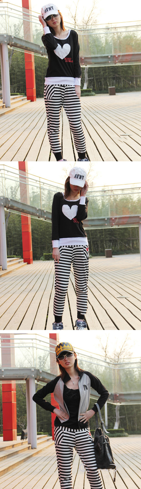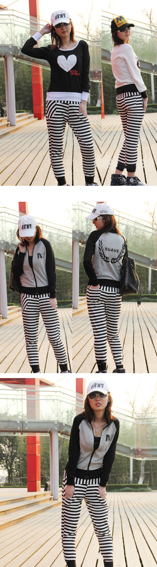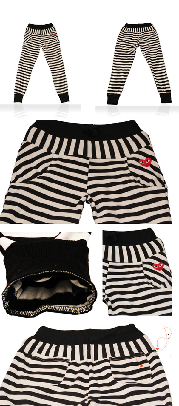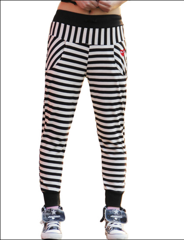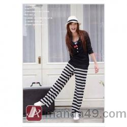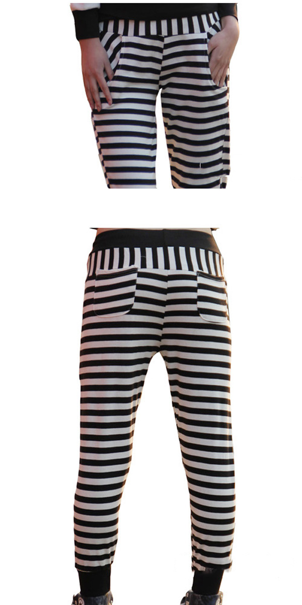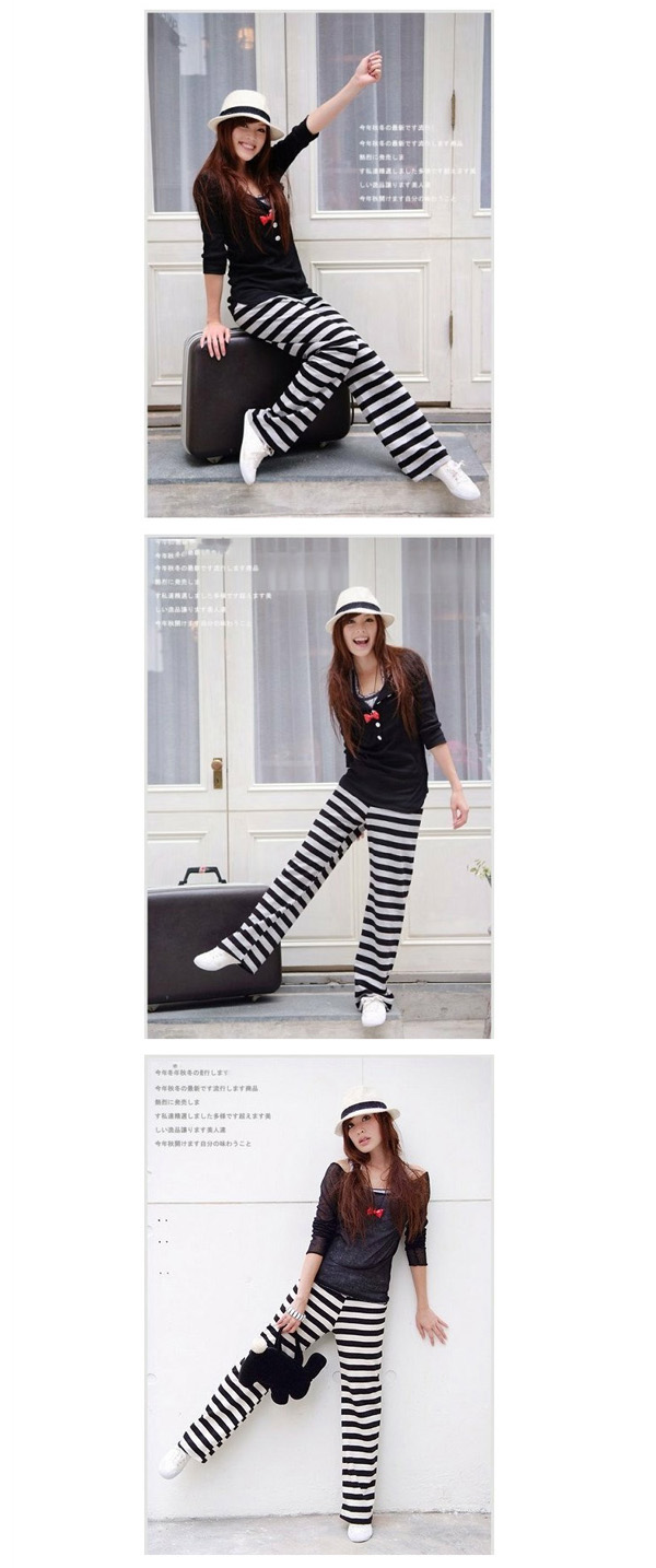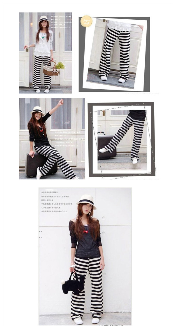 Amanda49 Fashionable and Graceful Elastic Waist Stripes Cotton Pants For Women |
