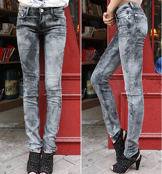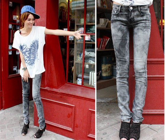 Amanda49 Fashionable and Slim Black Tie-Dye Pencil Jeans |