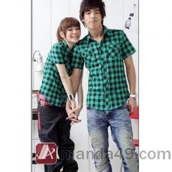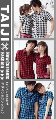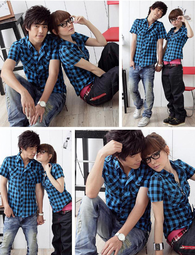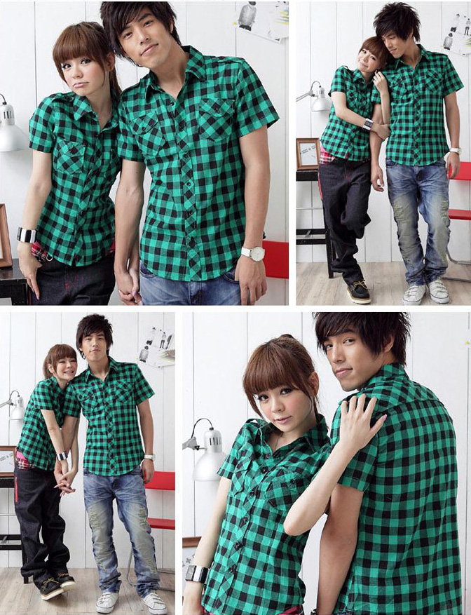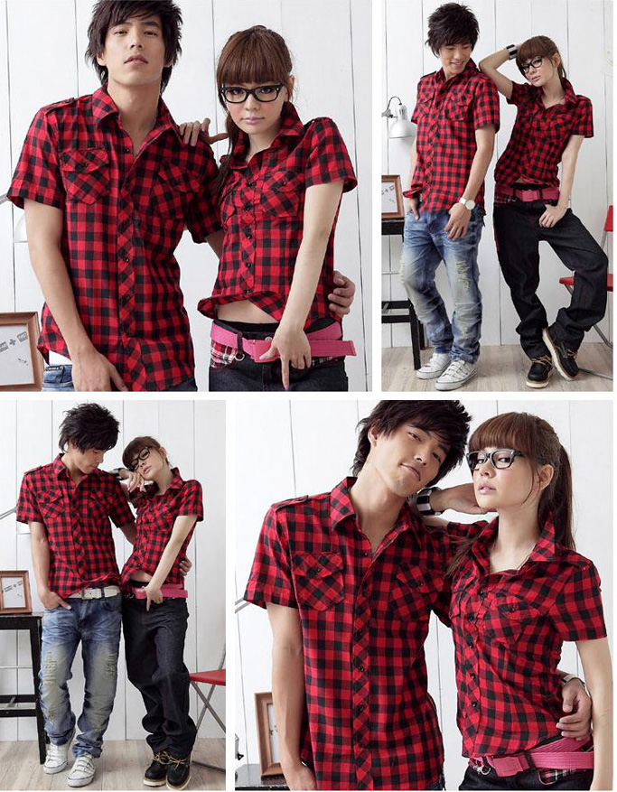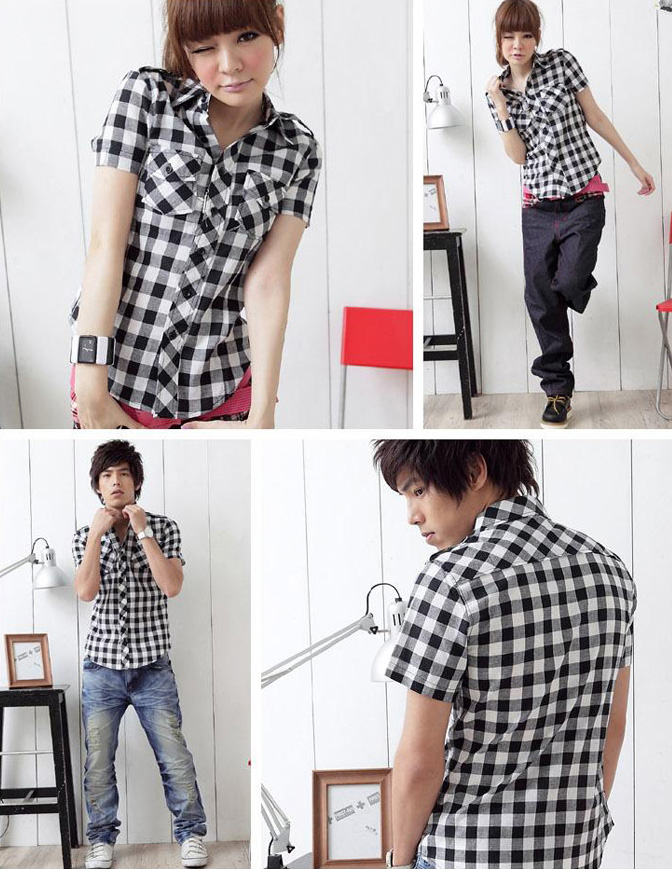 Amanda49 Fashionable and Slim Grid Style Short Sleeves Couple Blouses For Lovers |