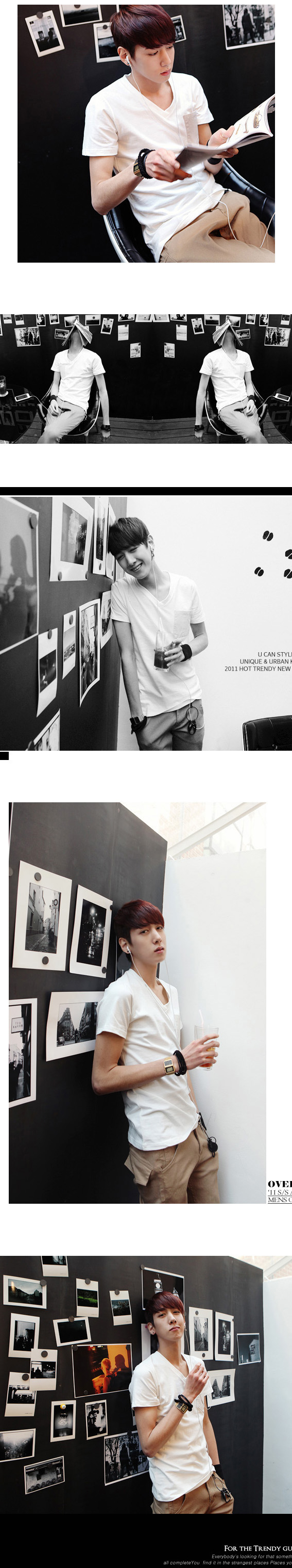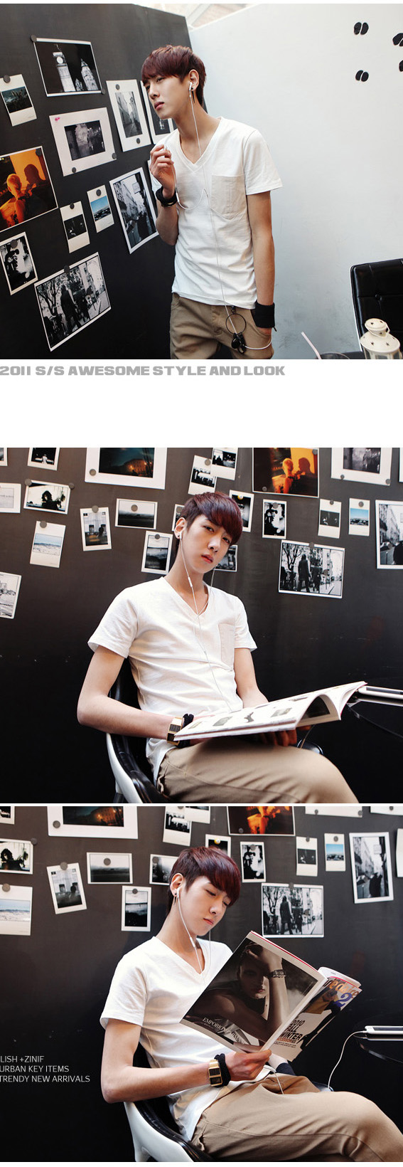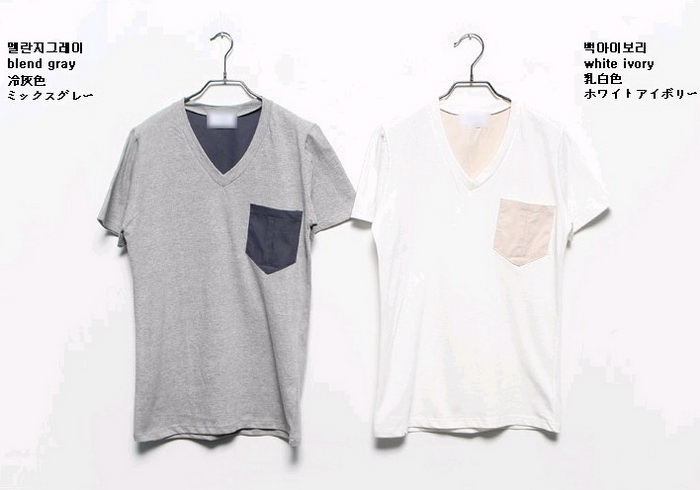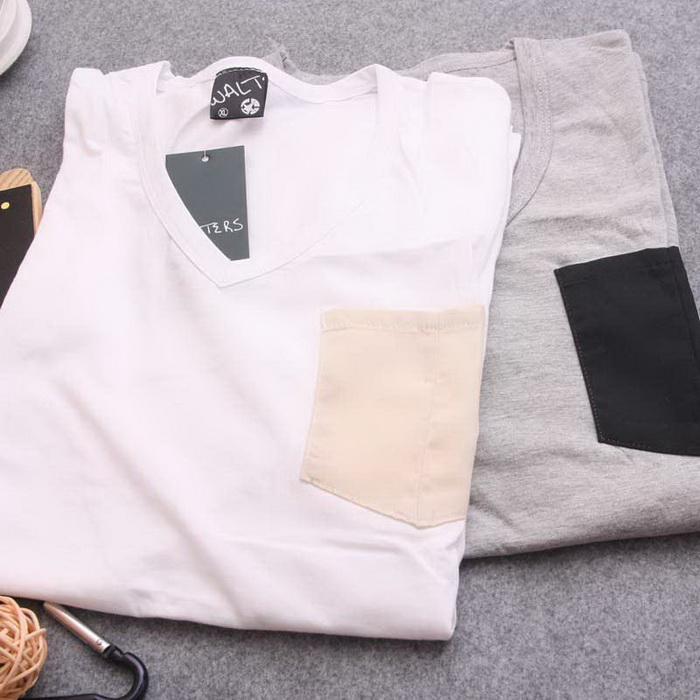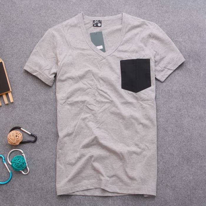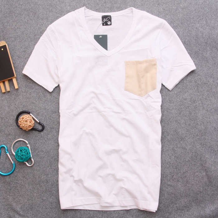 Amanda49 Fashionable and Slim V-Neck Special Pocket Style Short Sleeves T-Shirt For Men |