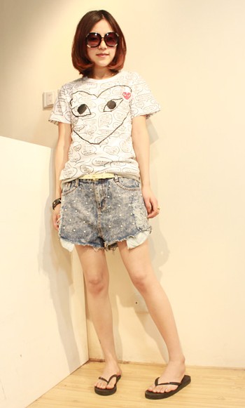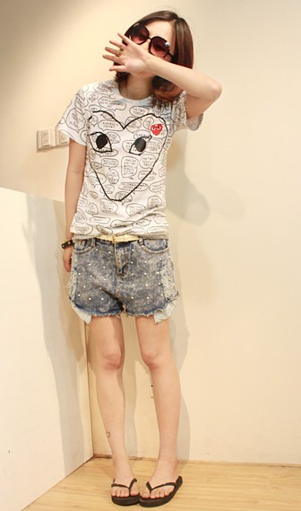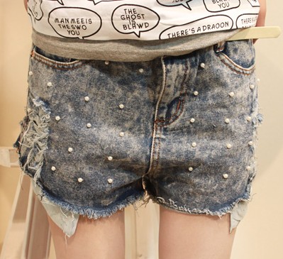 Amanda49 Fashionable Bead Embellished Snow Short Jeans |