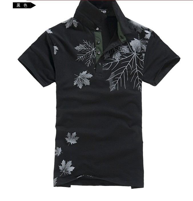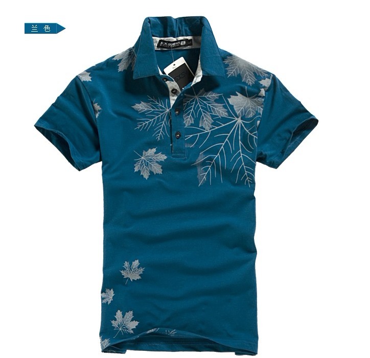 Amanda49 Fashionable British Style Lapel Cotton T-shirt For Men |