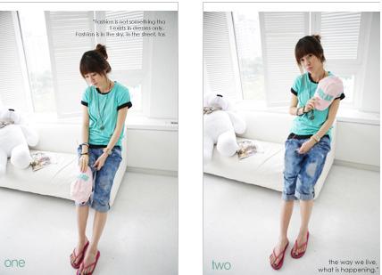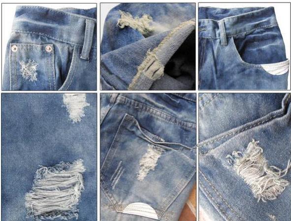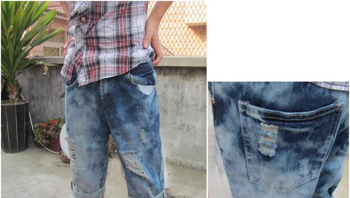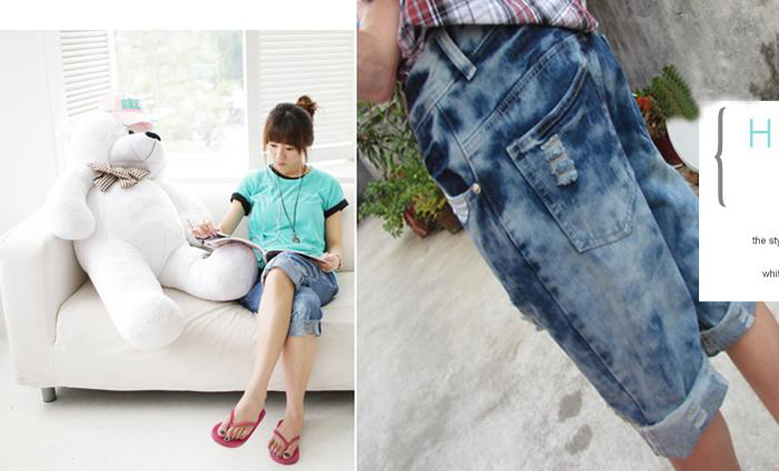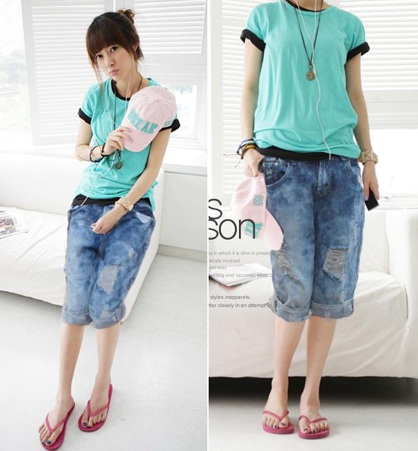 Amanda49 Fashionable Broken Hole Style Three Quarter Jeans |