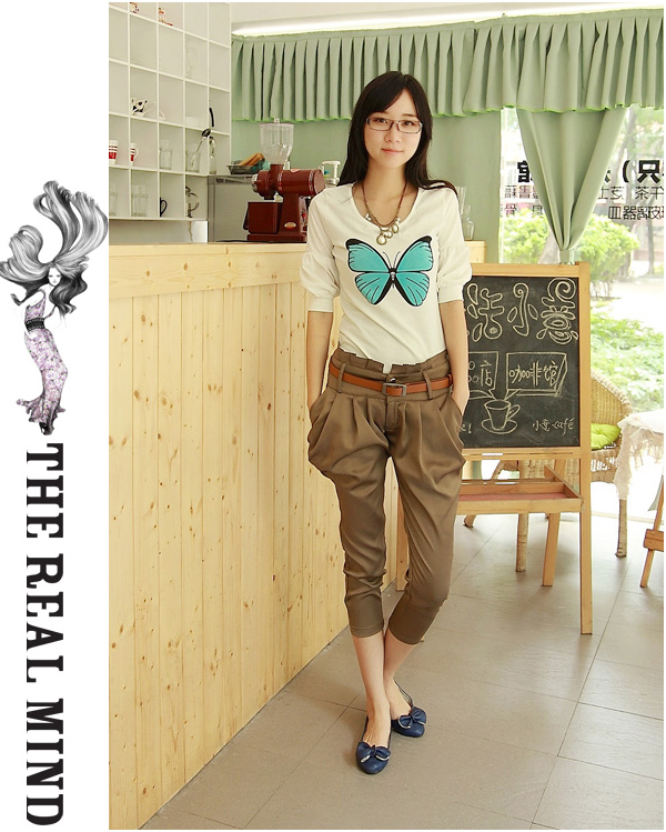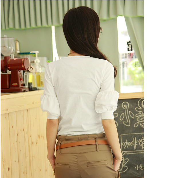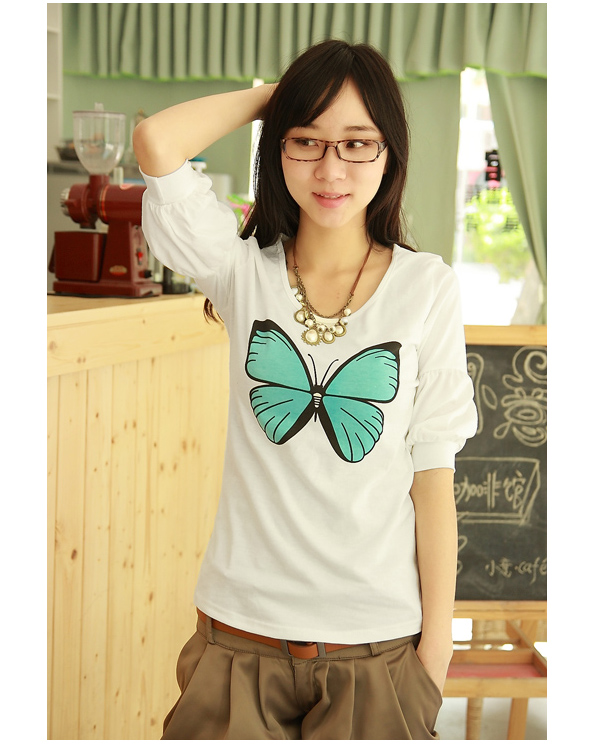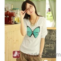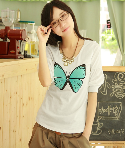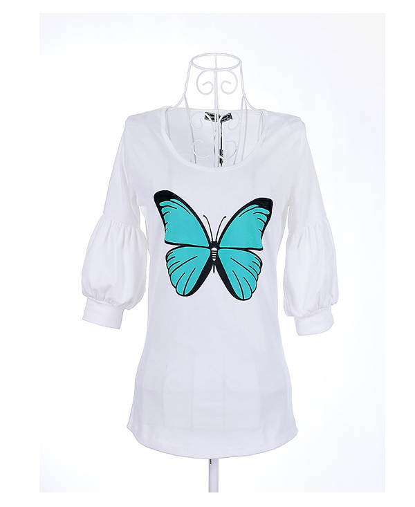 Amanda49 Fashionable Butterfly Print White Cotton Short Sleeve Blouse |