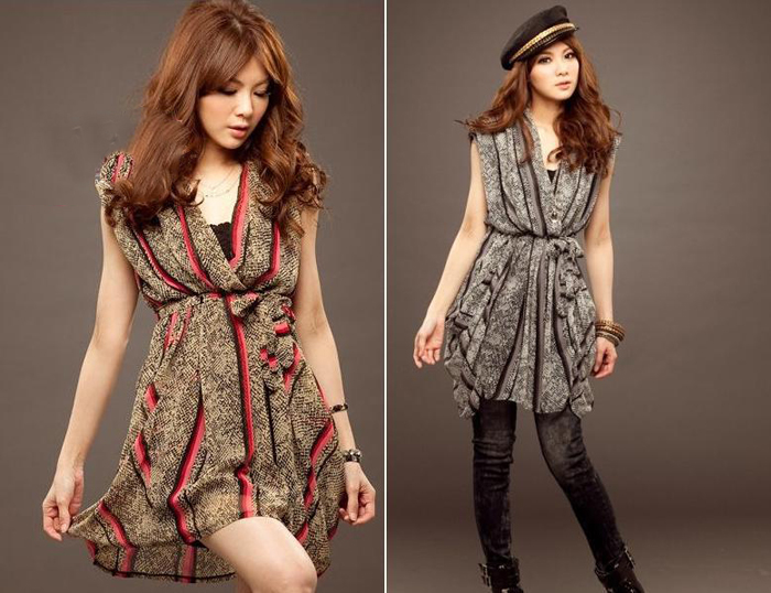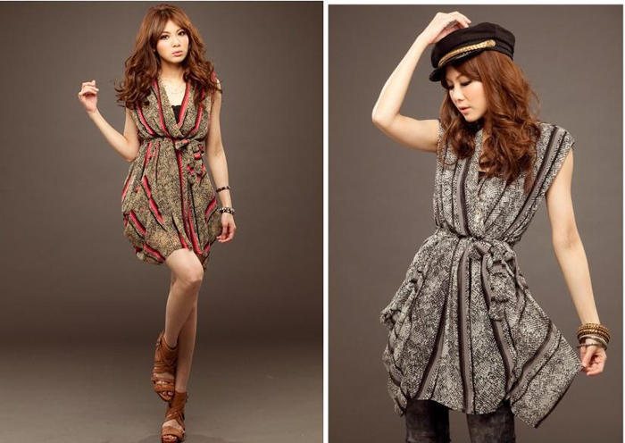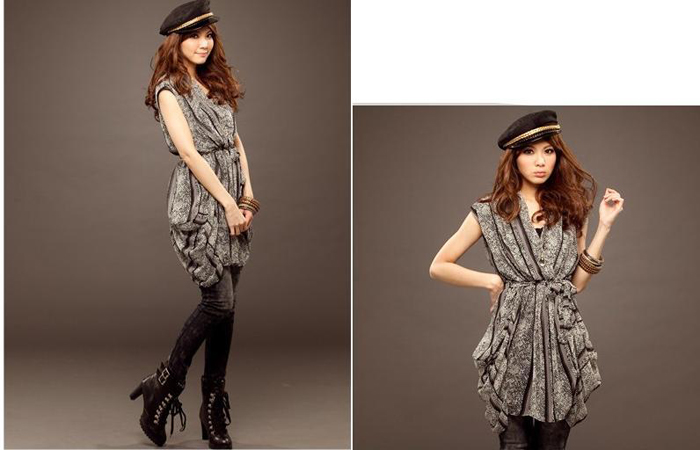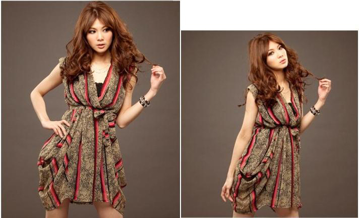 Amanda49 Fashionable Deep V-Neck Sleeveless Chiffon Dress For Women |