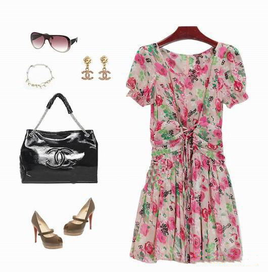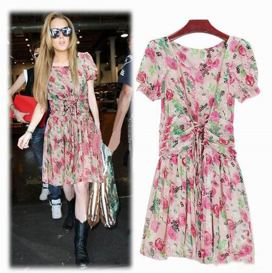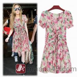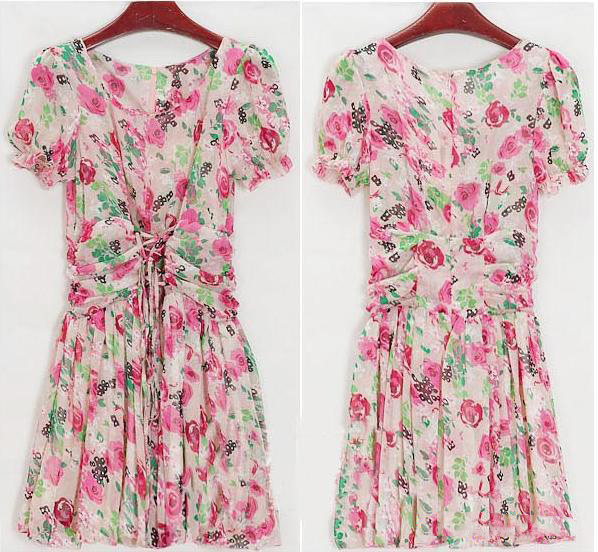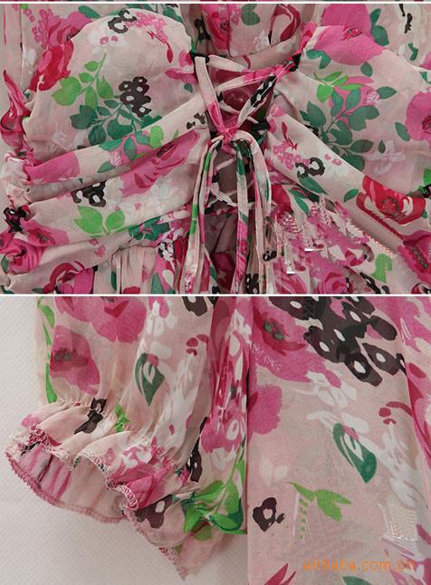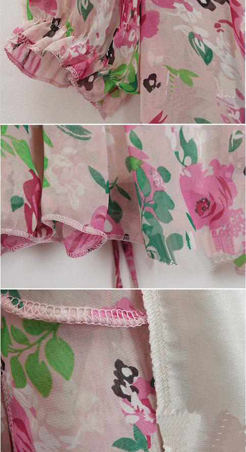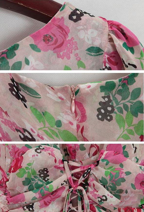 Amanda49 Fashionable Flowers Pattern Pink Sleeves Chiffon Dress--Women's Dresses |