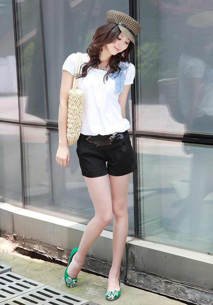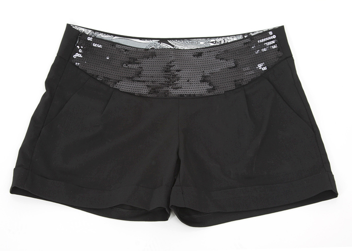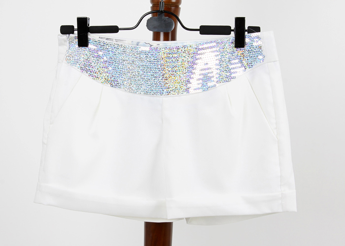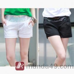 Amanda49 Fashionable High Waist Sequin Embellished Short Blending Series+Twill Trousers For Women |