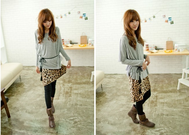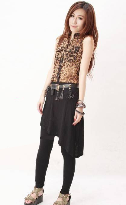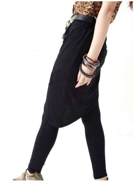 Amanda49 Fashionable Irregularity Hem Skirt Style Modal Cotton Long Pants With Belt For Women |