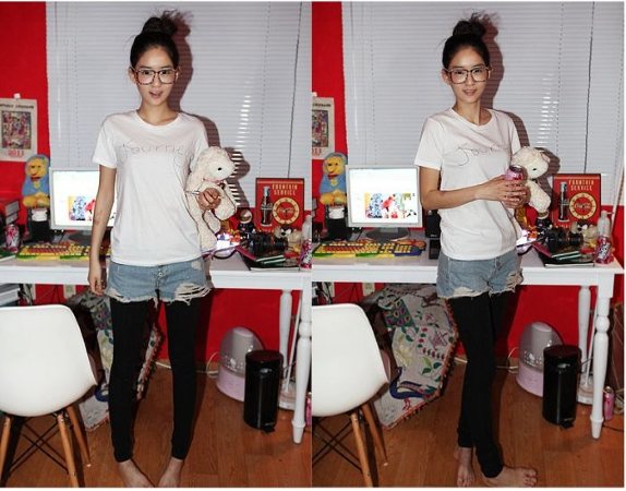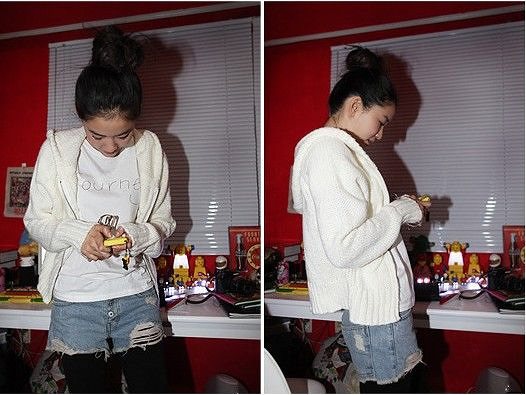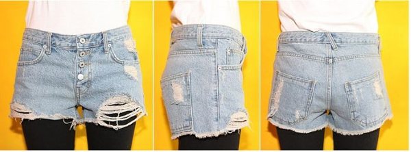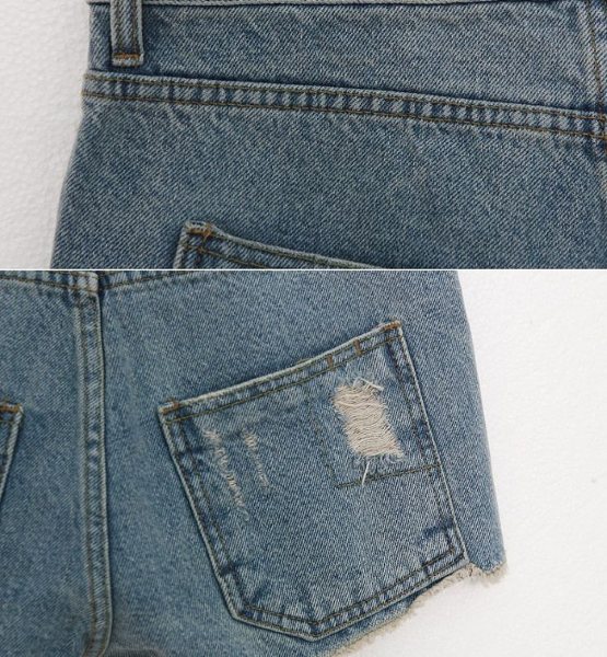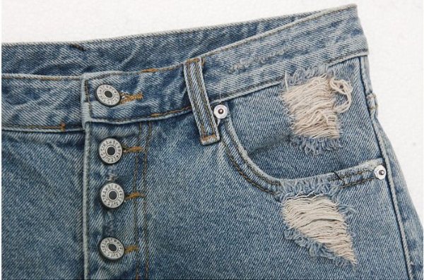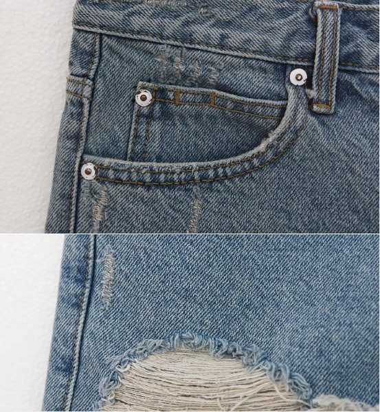 Amanda49 Fashionable Korea Style Button Design Light-Colored Ripped Jeans |