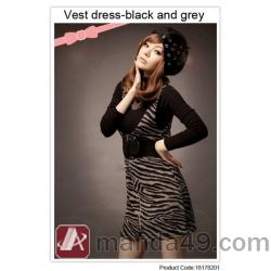 Amanda49 Fashionable Leopard Deep V-Neckline Elastic Cotton Black and Grey Sleeveless Dress |