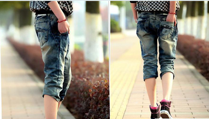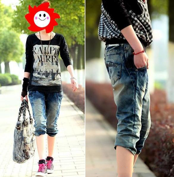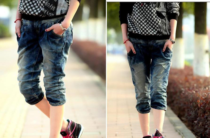 Amanda49 Fashionable Mix-Matched Harem Jeans |
