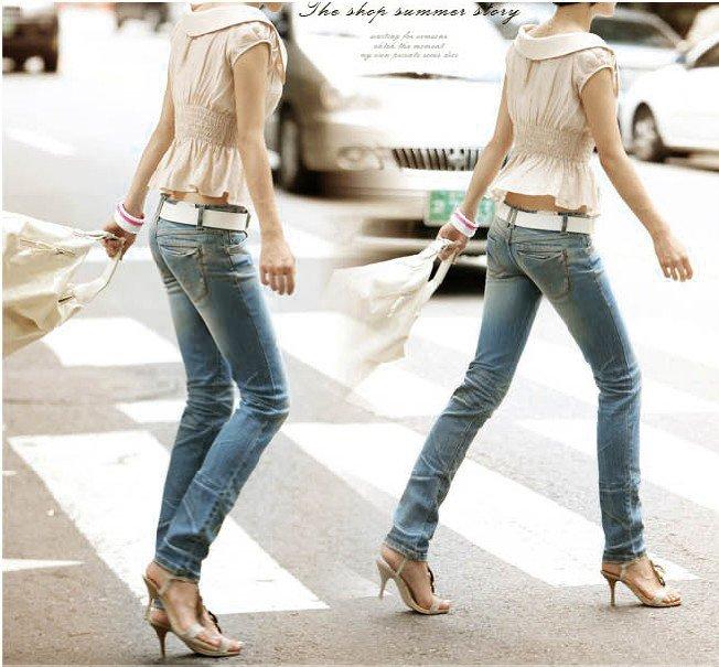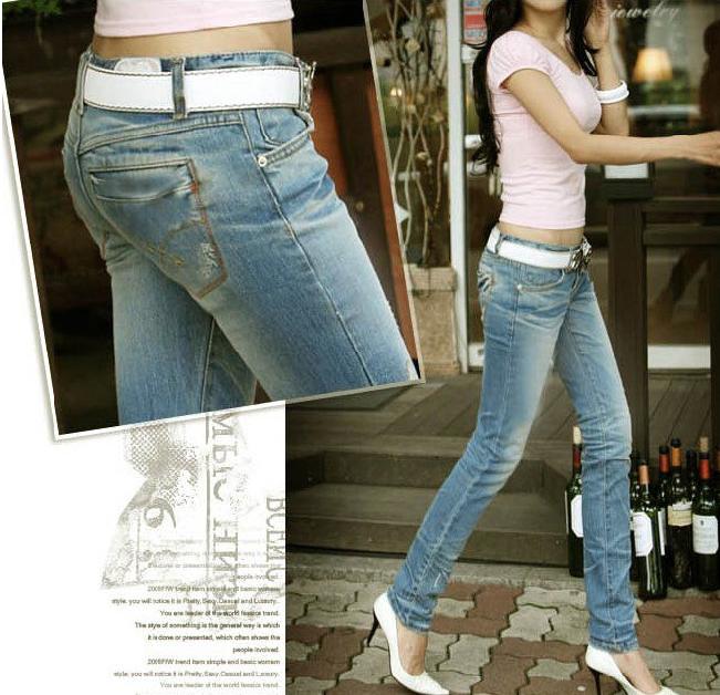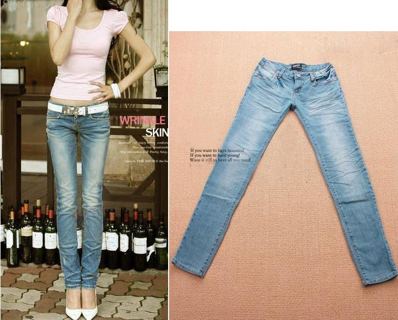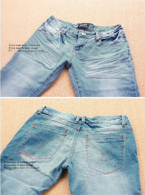 Amanda49 Fashionable Mix-Matched Pencil Slim Jeans |