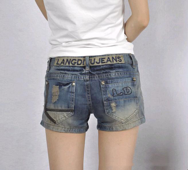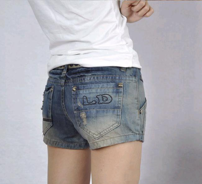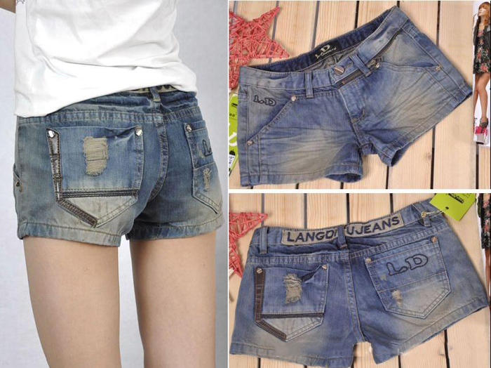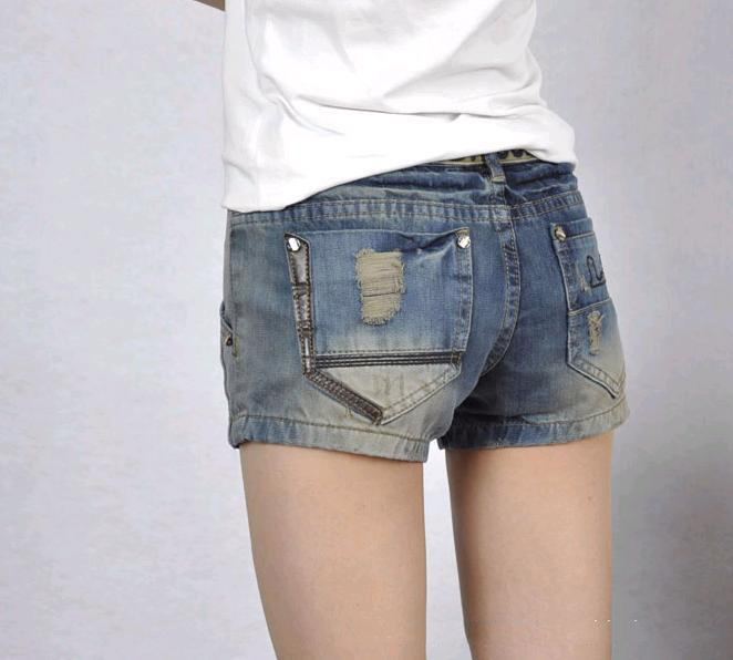 Amanda49 Fashionable Mix-Matched Stitching Short Jeans |