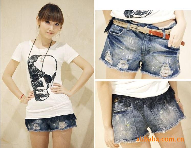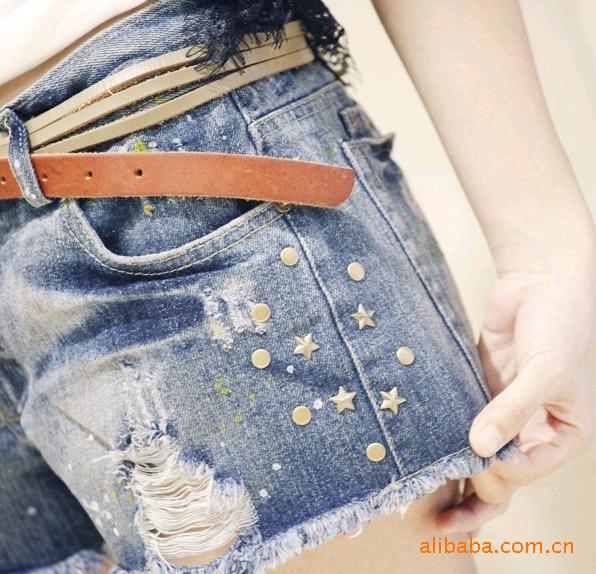 Amanda49 Fashionable Painted Beads Embellished Short Jeans--Women's Jeans |