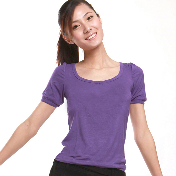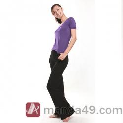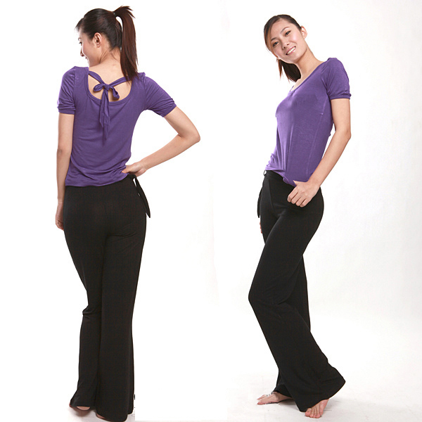 Amanda49 Fashionable Round Neckline Bow-Tie Design Back Purple Blouse and Black Trousers Yoga Clothing Dance Suit |