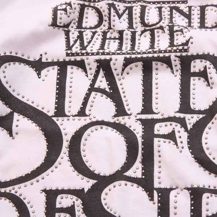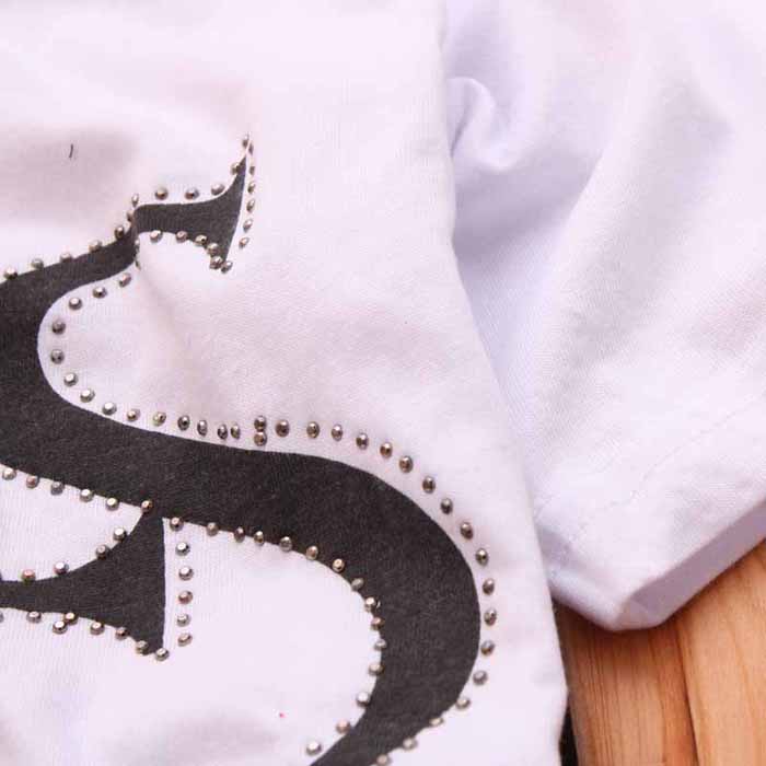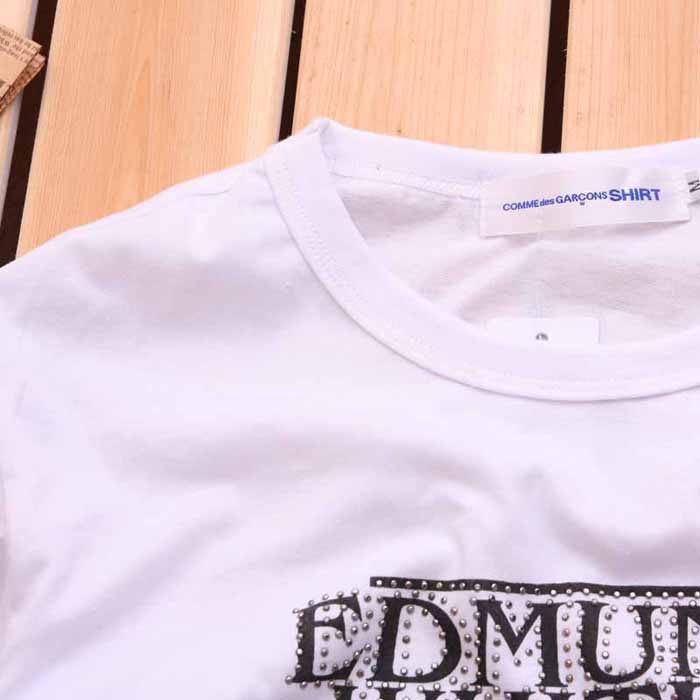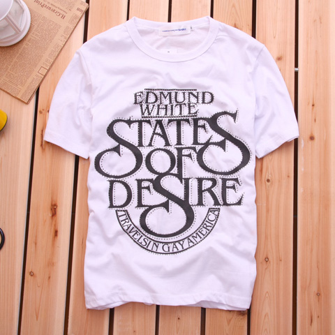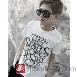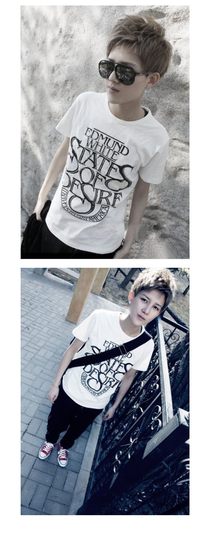 Amanda49 Fashionable Round Neckline Letter Embellished White Sleeves Cotton T-Shirt For Men |