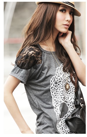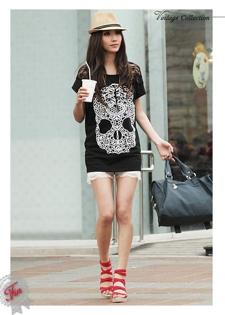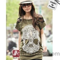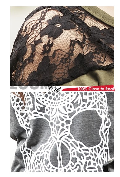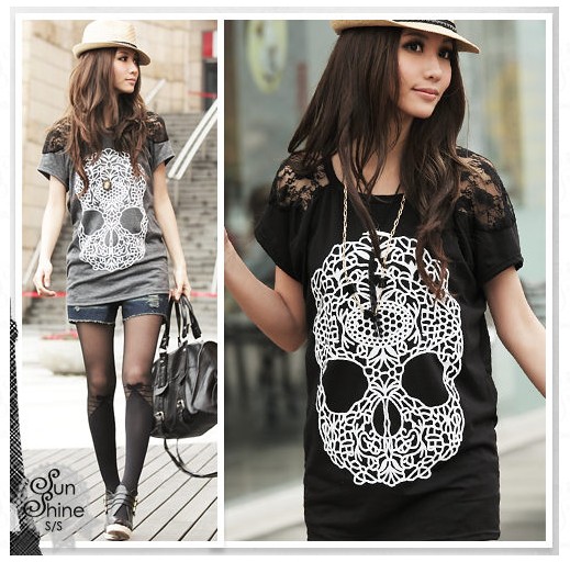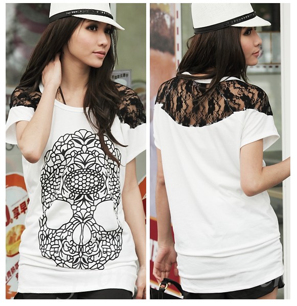 Amanda49 Fashionable Skull Head Patterns Lace Back Design Long Blouse |