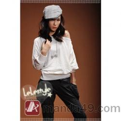 Amanda49 Fashionable Soft White Knitting Cotton Long Sleeve Blouse for Women |